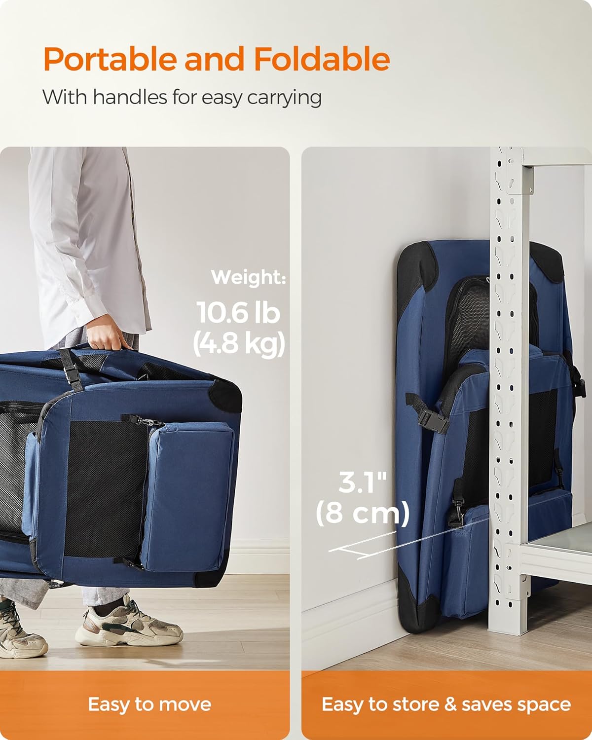 - 【EASY CLEANING & PRACTICAL STORAGE】The Oxford fabric surrounding this portable dog crate is water-resistant, so stains can be easily wiped away. The fleece pad is removable for cleaning (inner padding not washable). 2 pockets keep snacks and leashes handy