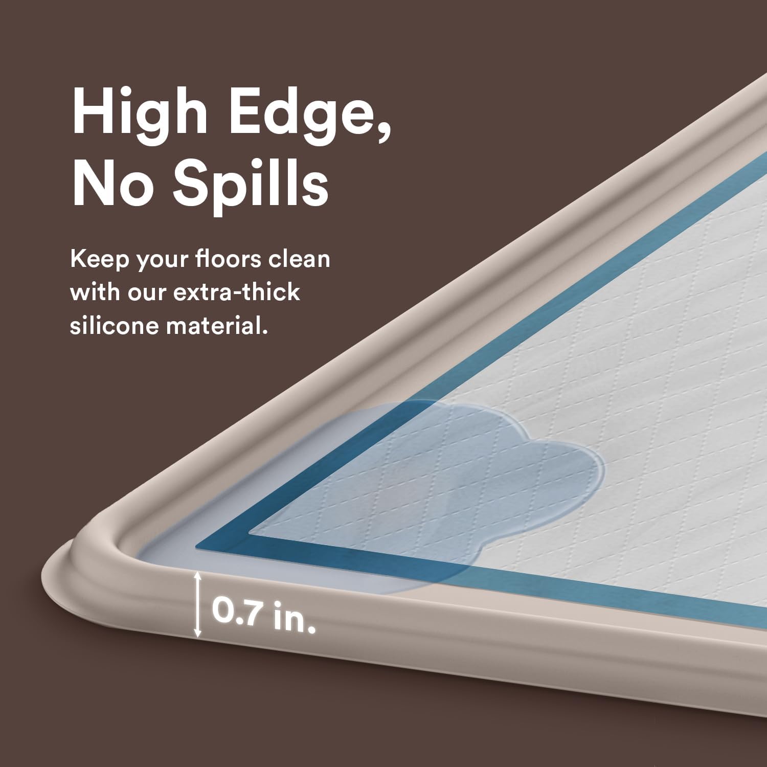 Pee Pad Tray Holder for Dogs - Fits Up to 25 x 25 in. Square Potty Training Pads No Spill Raised Lip High Edge Silicone Mat, Extra Thick and Non-Slip for Indoor Floor Protection (Large, Beige) | eenk