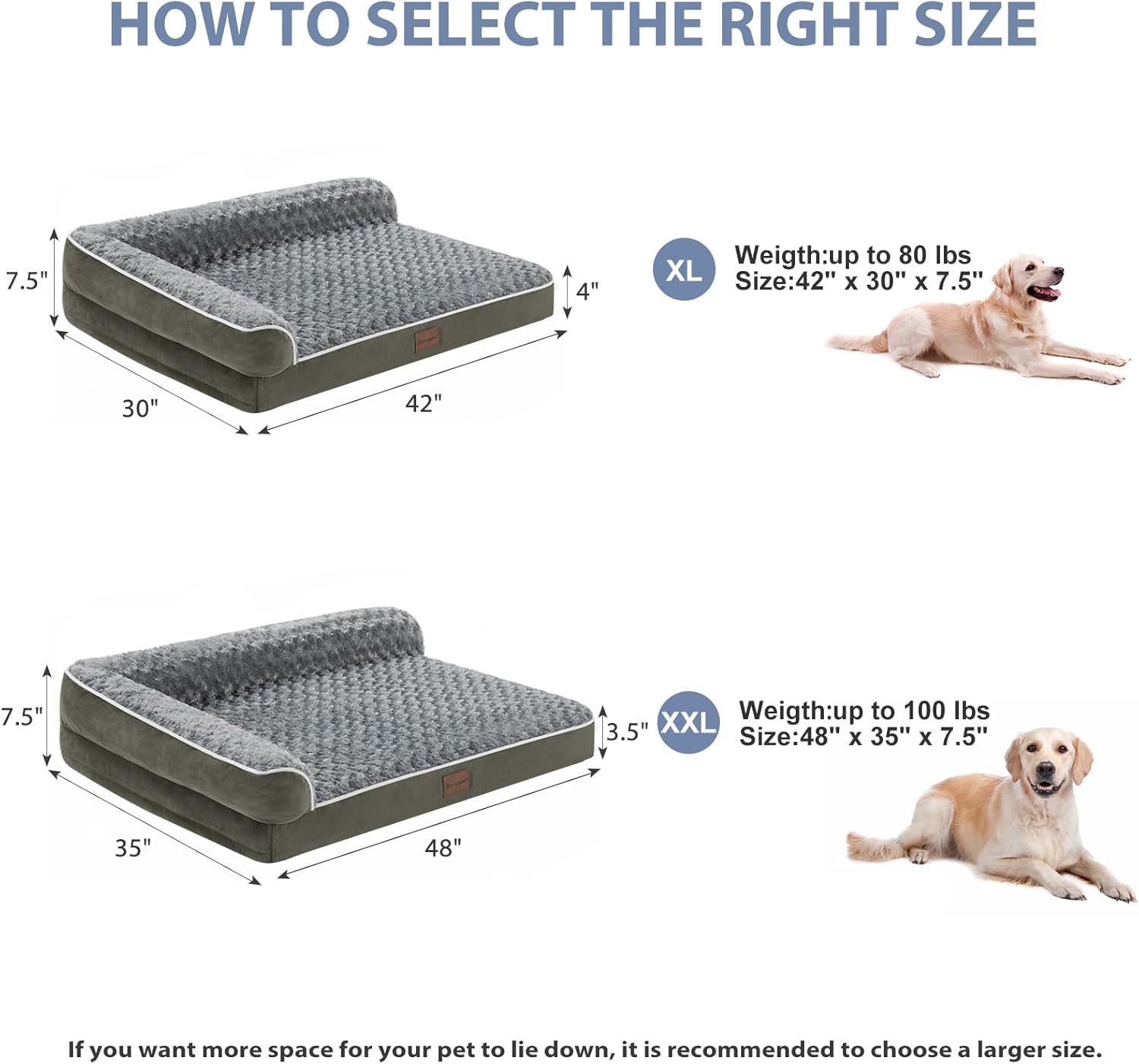 - L-SHAPED DOG BED: This X large dog bed adopts L shaped design, the dog beds Soft and comfortable rails provide extra support for our pet's head and neck, and the dog sofa bed has no railings on two sides, providing plenty of room for pets to stretch out. The dog beds for large dogs allow pets to be more soothed and relaxed and to fall into a deep sleep.