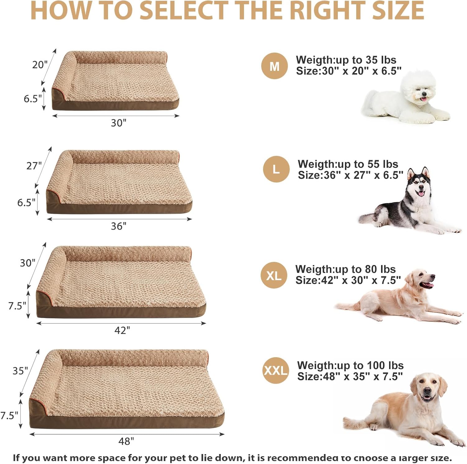 - L-SHAPED DOG BED: This XX large dog bed adopts L shaped design, the dog beds Soft and comfortable rails provide extra support for our pet's head and neck, and the dog sofa bed has no railings on two sides, providing plenty of room for pets to stretch out. The dog beds for large dogs allow pets to be more soothed and relaxed and to fall into a deep sleep.