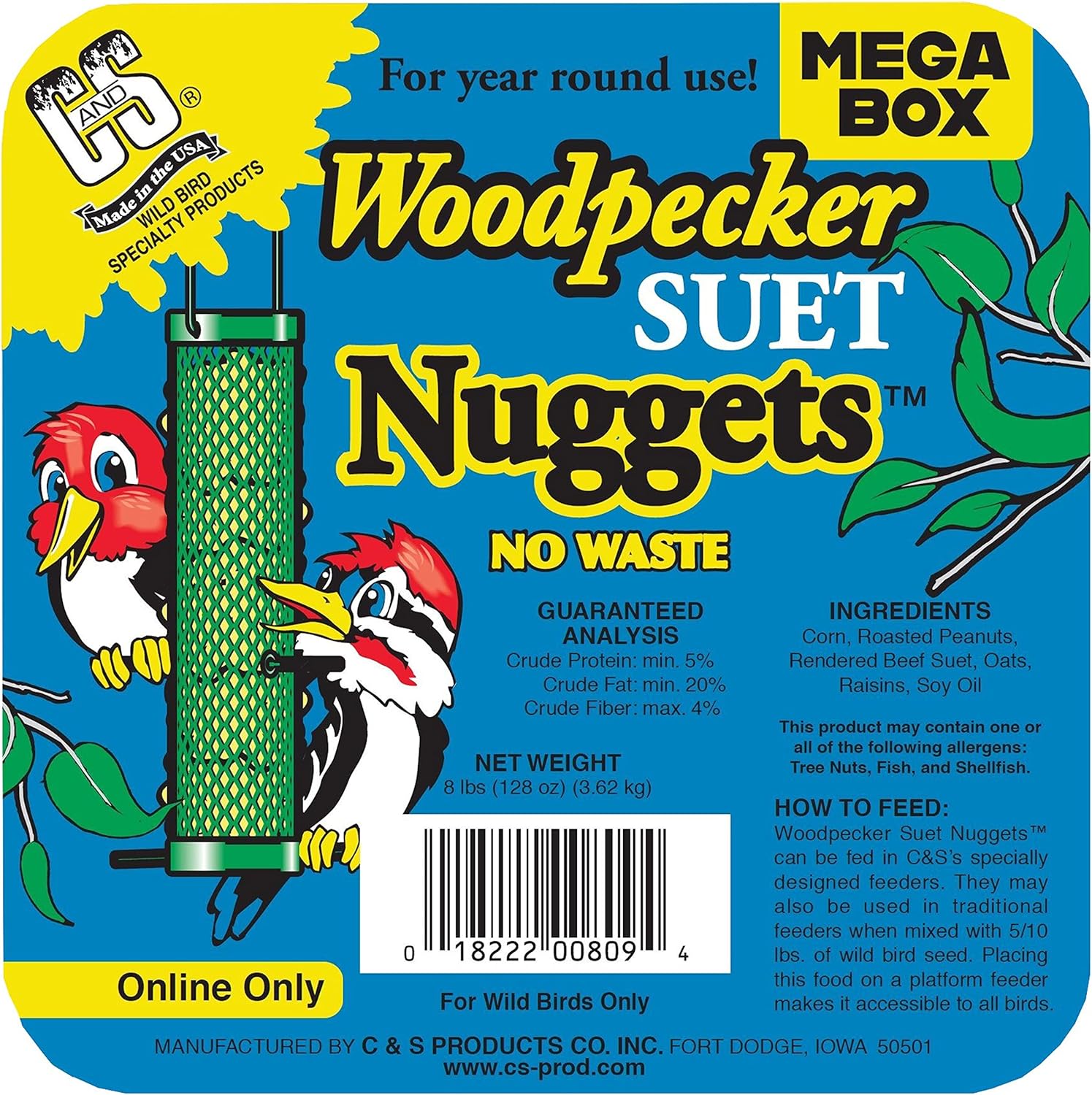 - A VERSATILE FEEDING SOLUTION. C&S Woodpecker Suet Nuggets can be fed alone or mixed with 5-10 lbs of wild bird seed mix.