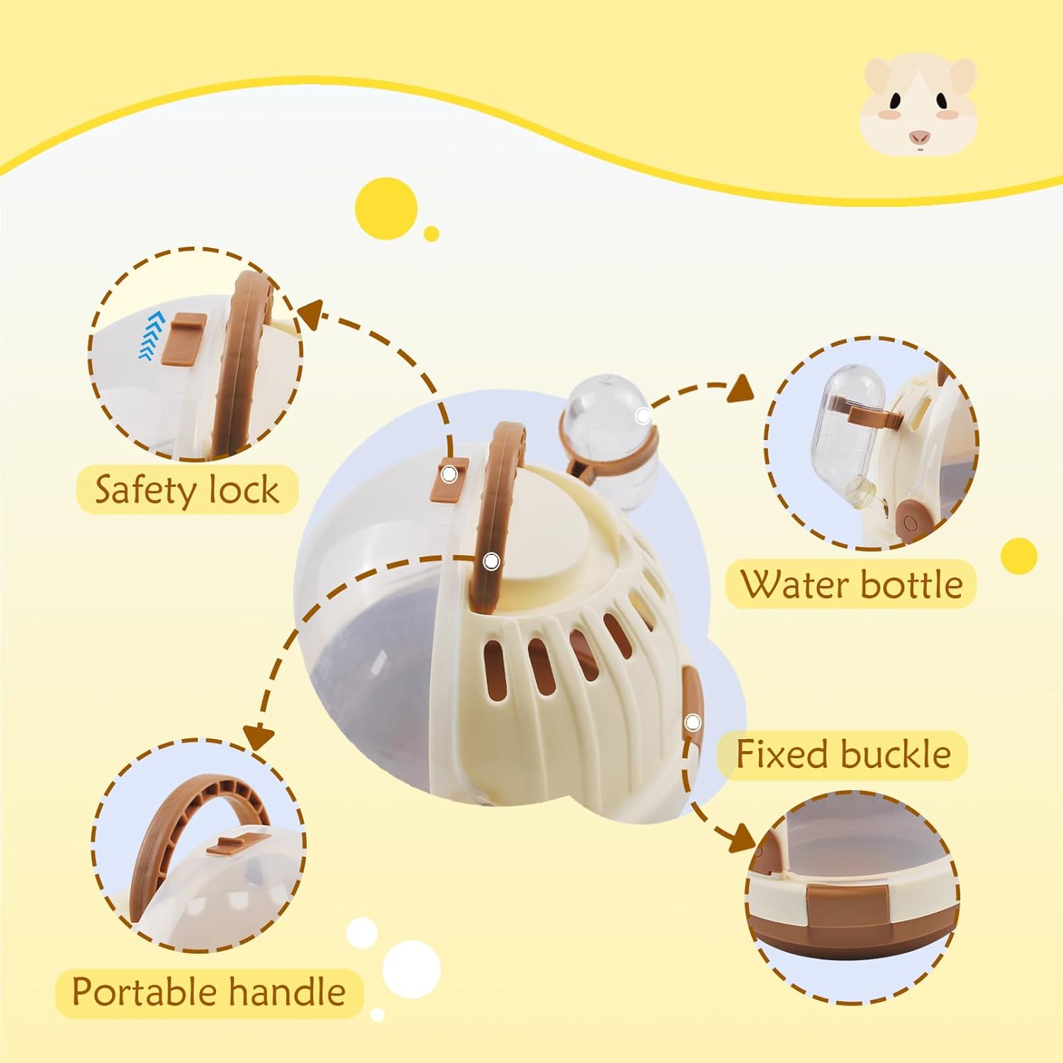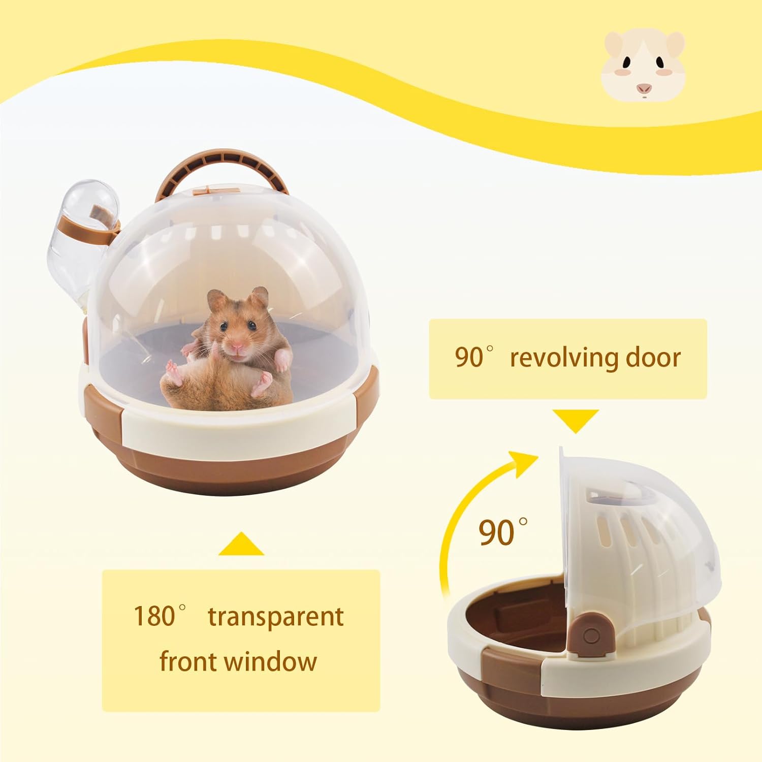 Hamster Carrier Cage Portable Cages Small Animals Carry Travel Case with Water Bottle Plastic Breathable Guinea Pig Outgoing Cage for Dwarf Hamster Ferret Chinchillas Hedgehog (Brown)