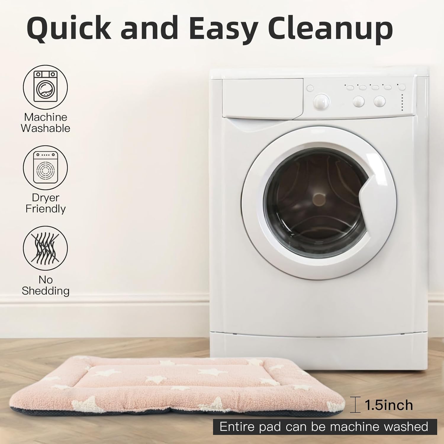 Mora Pets Dog Crate Pad Kennel Dog Bed Mat for Medium Dogs Washable Cute Star Pet Bed for Cage Ultra Soft Flat Puppy Cat Kitten Cushion for Sleeping Anti-Slip Pink 30 x 19