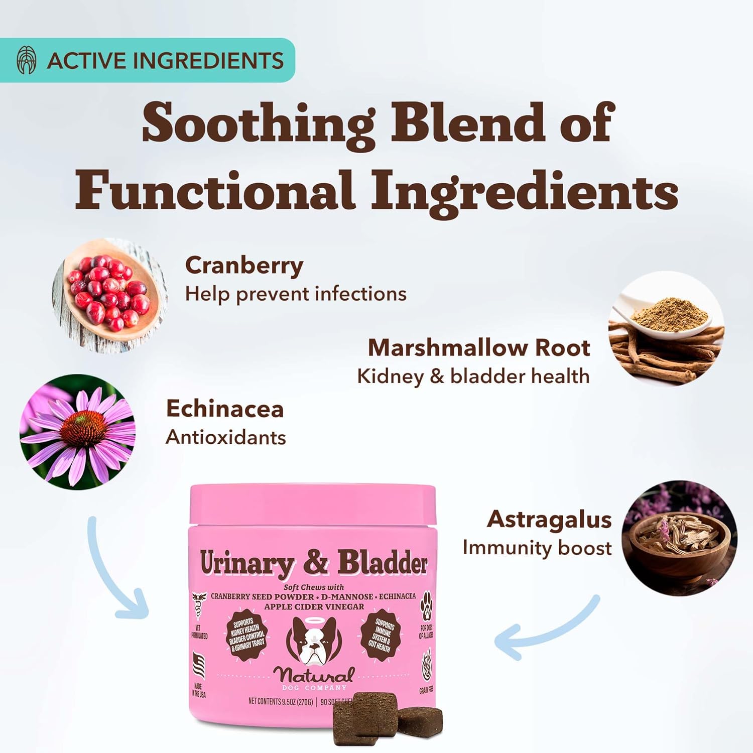 Natural Dog Company Urinary & Bladder Supplement for Dogs – Cranberry & D-Mannose Soft Chews with Marshmallow Root & Astragalus – Supports Urinary Tract Health, Bladder Function & Normal Urine Flow