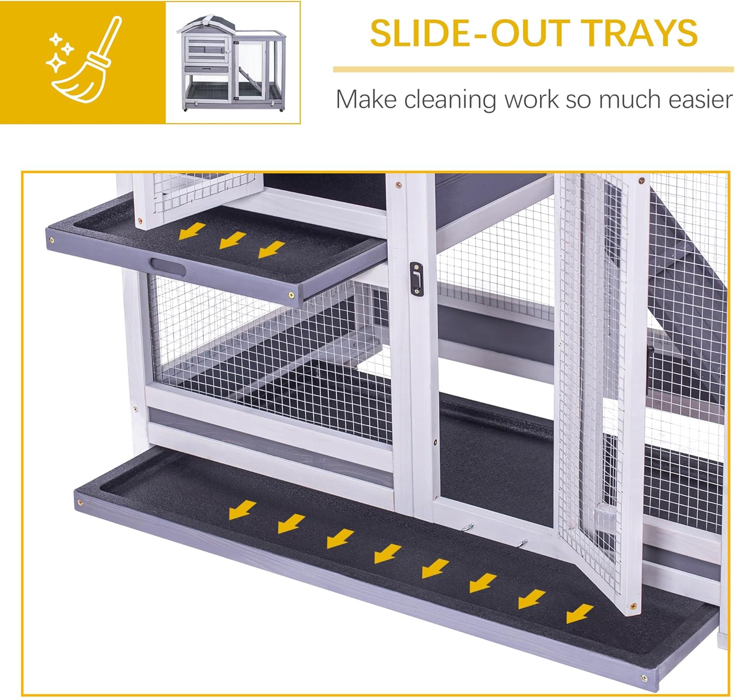 - Effortless cleaning: The large rabbit hutch features a removable tray for easy waste disposal and cleaning, maintaining a hygienic environment for pets