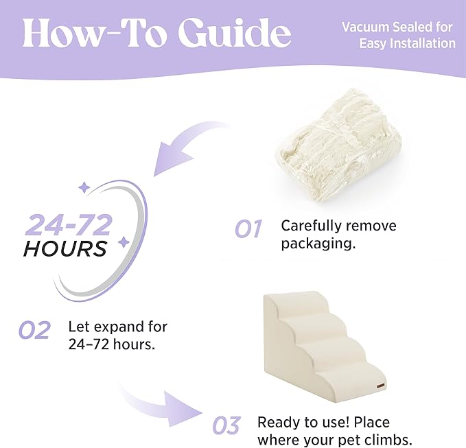 - Easy to Clean: Keeping these pet stairs for dogs fresh and tidy is a breeze. Simply remove the foam core and machine wash the outer cover separately in cold water on a delicate cycle. Please note, the foam core should not be machine washed or dried to ensure long-lasting use and comfort for your pets.
