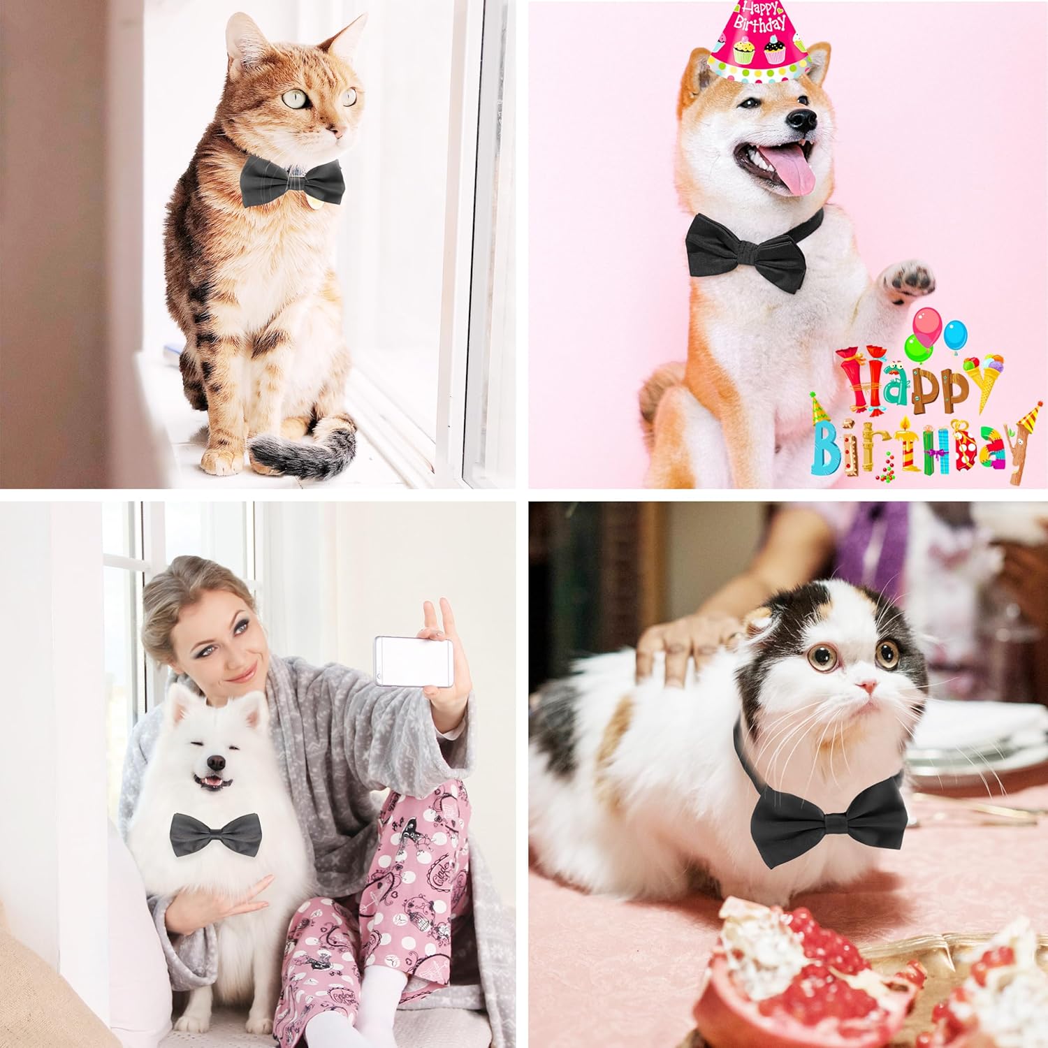 Black Dog Bow Tie, KOOLMOX Adjustable Bow Tie Dog Collar for Medium and Large Dogs Cats Pets Wedding Birthday Graduation Holiday Grooming Cosutmes