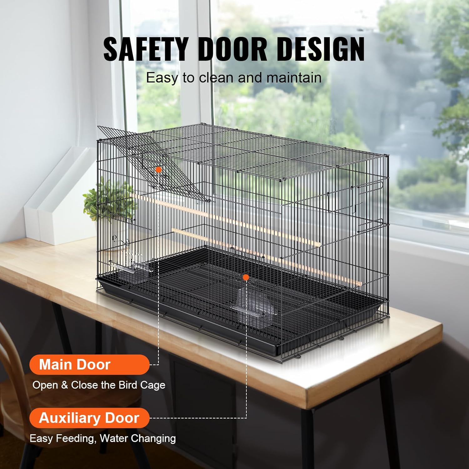 - Easy to Clean and Maintain: The parrot cage features a detachable slide-out tray for easy cleaning. The mesh grating prevents pets from walking directly on waste but also prevents bird droppings from accumulating at the bottom. This ensures the birds' well-being and providing a convenient way to simplify maintenance.