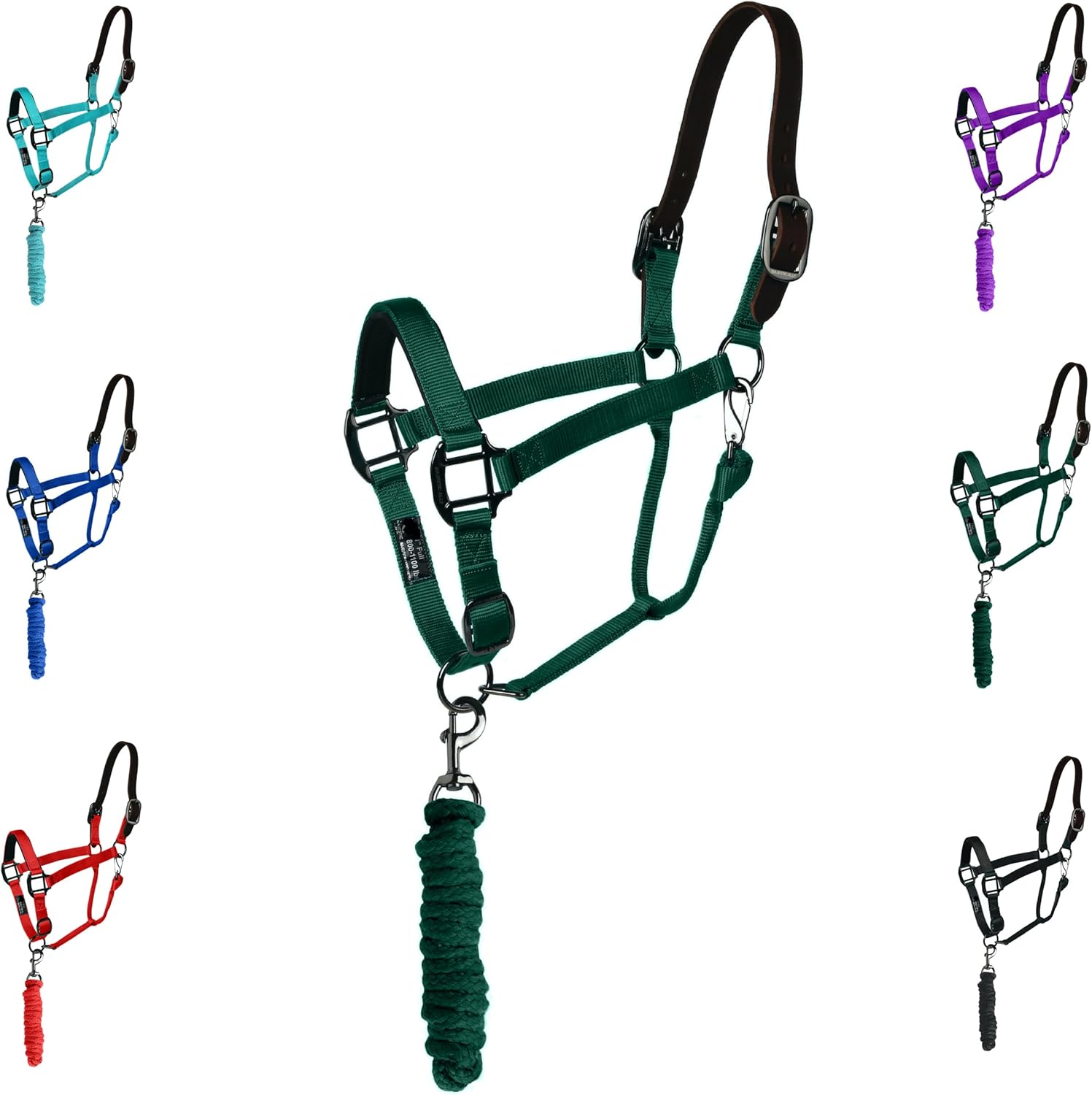 - EXQUISITE COLORS, LOVELY PRESENT: These horse halters and lead ropes come with a modern, elegant design that will definitely impress you. Choose from multiple color choices in black nickel finish hardware. Also, Order this halter for horses for yourself or as a thoughtful present for a friend, loved one or horse owner and you can be sure to win their appreciation! These halters are incredibly long-lasting and easy to maintain.