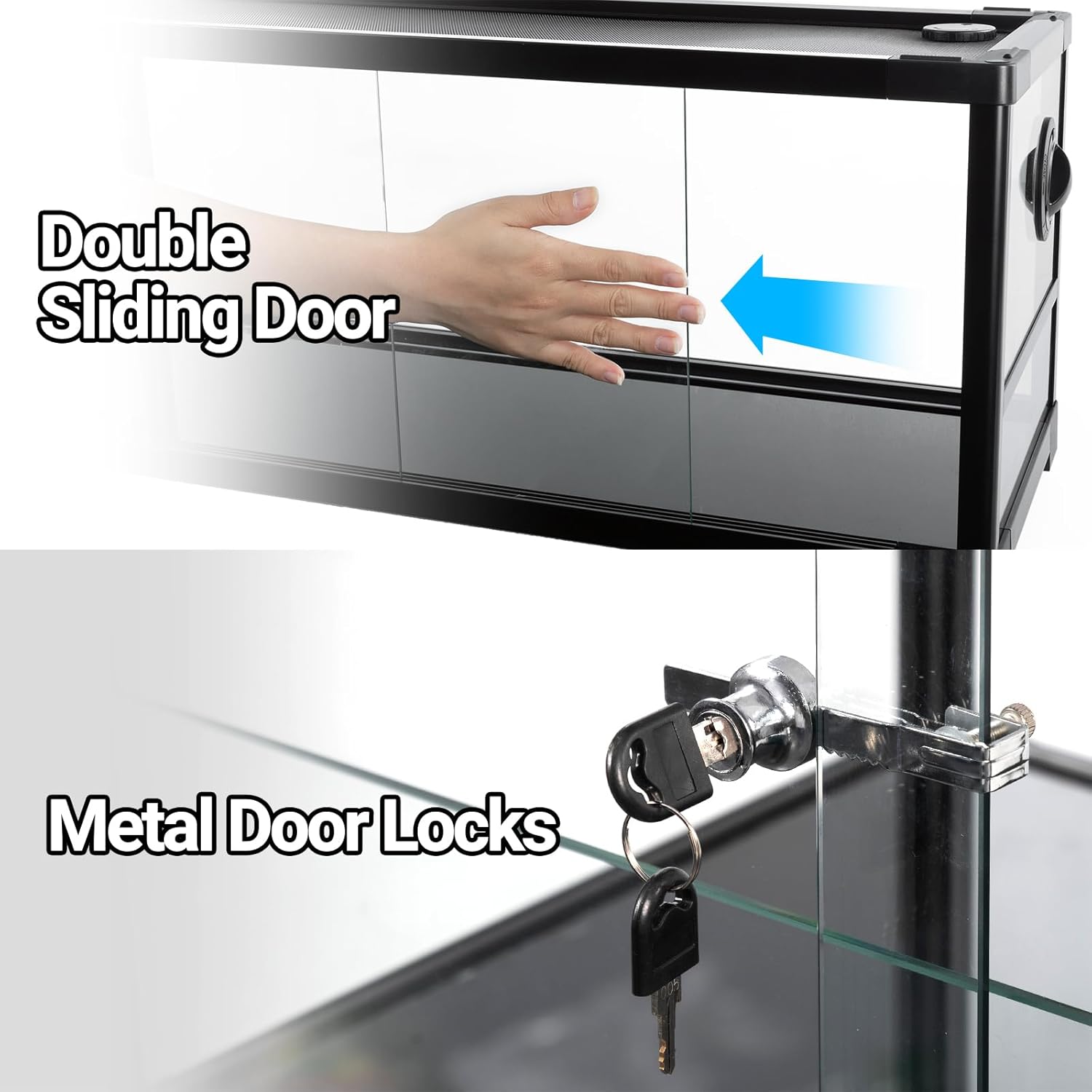 - Double Sliding Door and Cable Pass: CAVACHEW large terrarium design with double sliding door, equipped with upgraded door locks, easy to feed your reptiles and prevent escape, also can save space and no worries about the child opening the tank, cable pass used rotating fixed structure which can holds lines firmly.