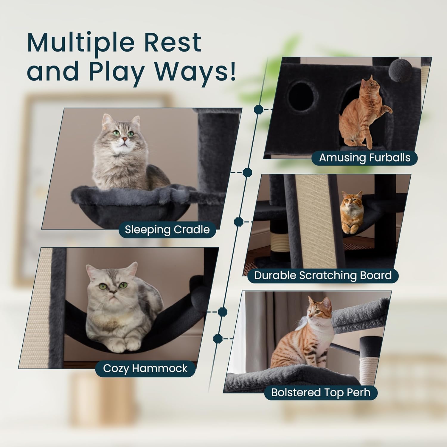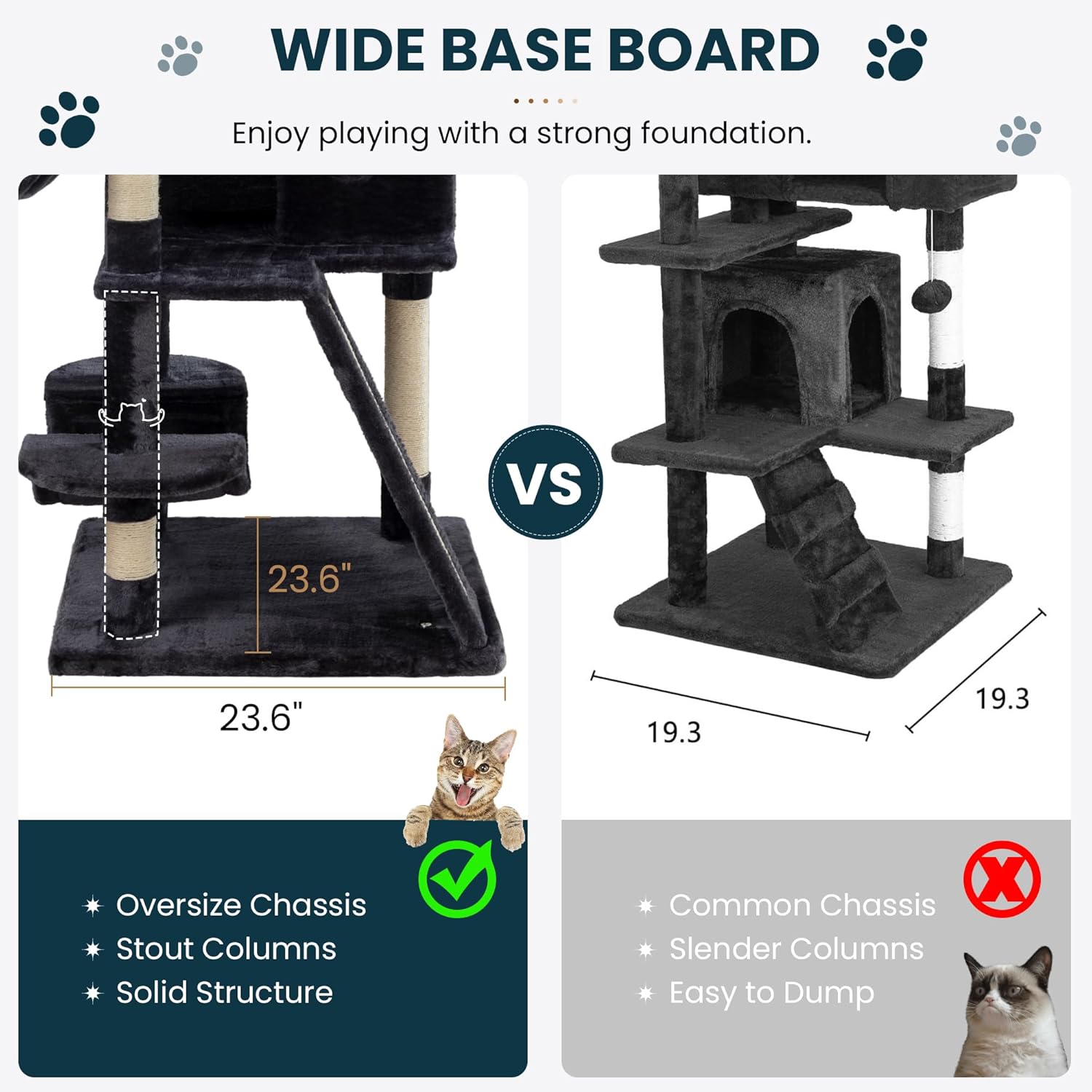 SHA CERLIN 65in Larger Cat Tree Tower Condo for Indoor Kitties/Multi-Level Furniture Activity Center with Wide Base/Cozy Plush Cat Perches/Baskets/Sisal Scratching Posts and Hammock/Dark Grey