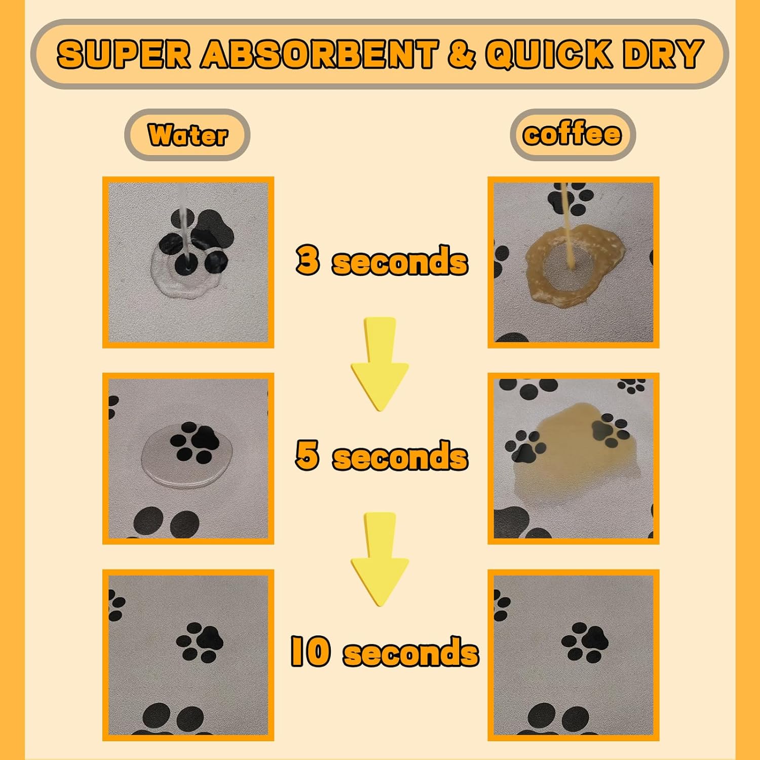 - No Staining. This dog food mat quickly absorbs water stains from the surface in 10 seconds, and milk stains or colored water are completely invisible after being absorbed. Reduces the difficulty and frequency of the owner's work to clean the feeding mat