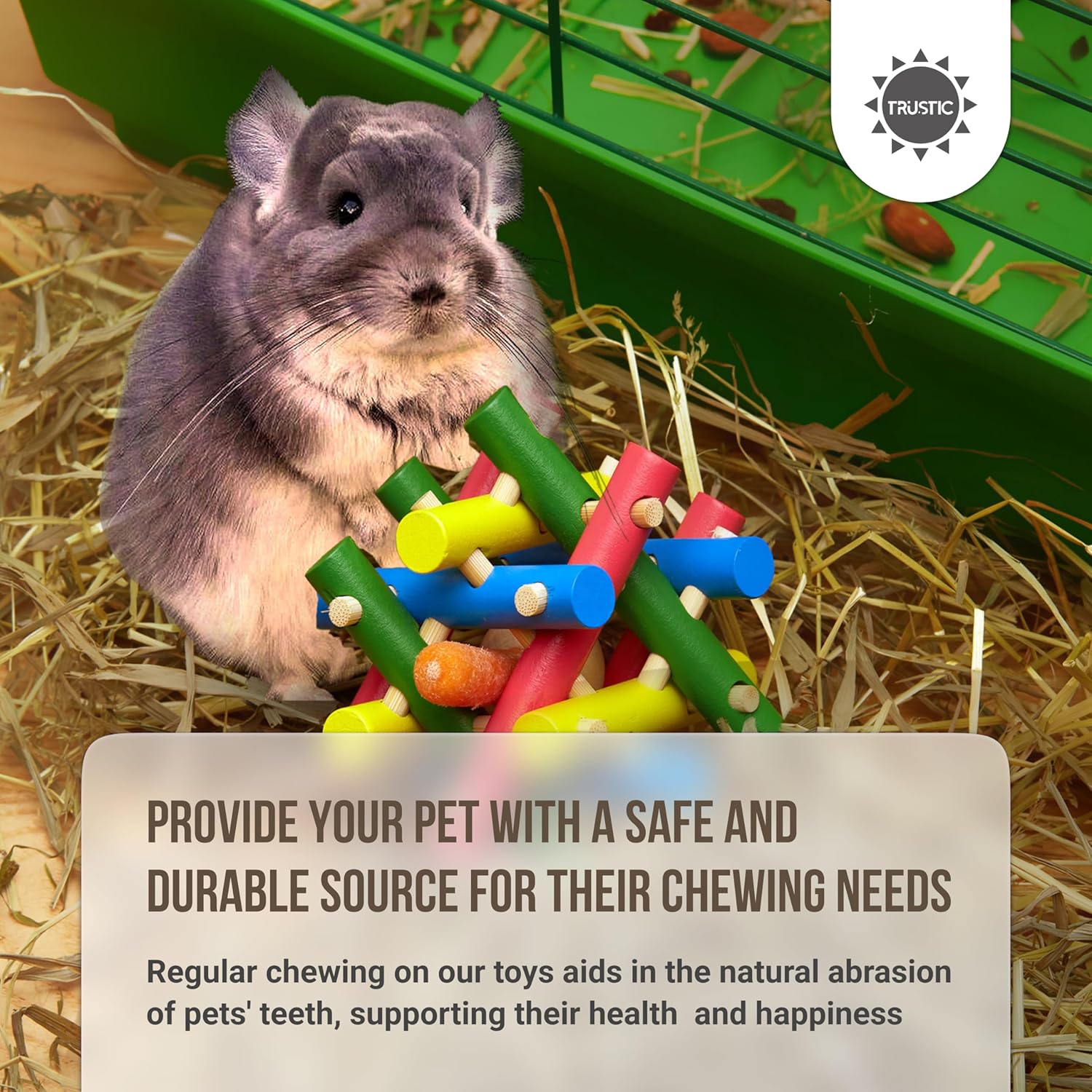 Wooden Chewing Toy for Small Animals, Natural Wood for Rabbit, Guinea Pig, Bunny, Chinchilla (Colored)