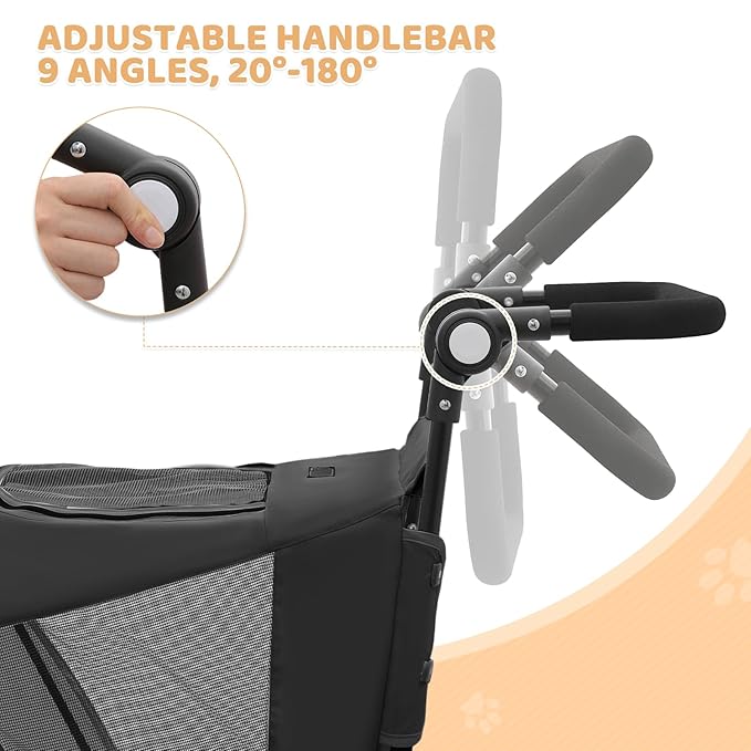 - Multi-position handle for ergonomic comfort: Adjustable handles accommodate people of different heights, with cushioned grips to reduce back strain during jogs or long walks, perfect for tall owners