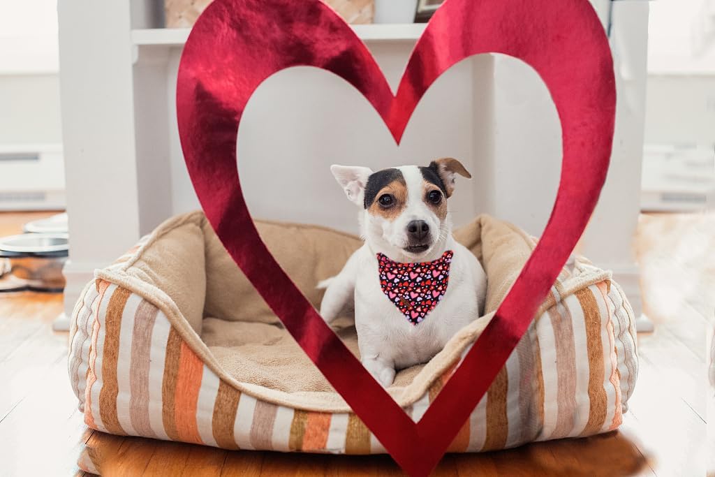 Lionet Paws Valentine Dog Bandana for Small Medium Dogs,Pink Hearts Black Kerchief Washable Dog Triangle Bibs Scarf for Girl or Boy Gift