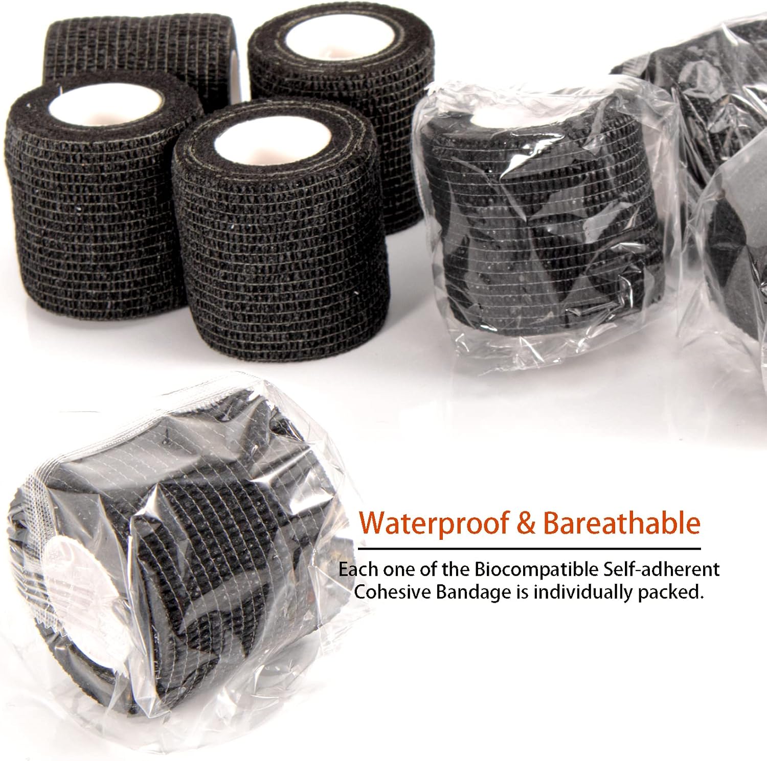 LDIWEE 24 Pack 2 Inch Self Adhesive Bandage Wrap - 5 Yard Black Cohesive Vet Wrap & Athletic Tape Grip Tape for Ankle Sprains, First Aid Medical, Sports Injuries