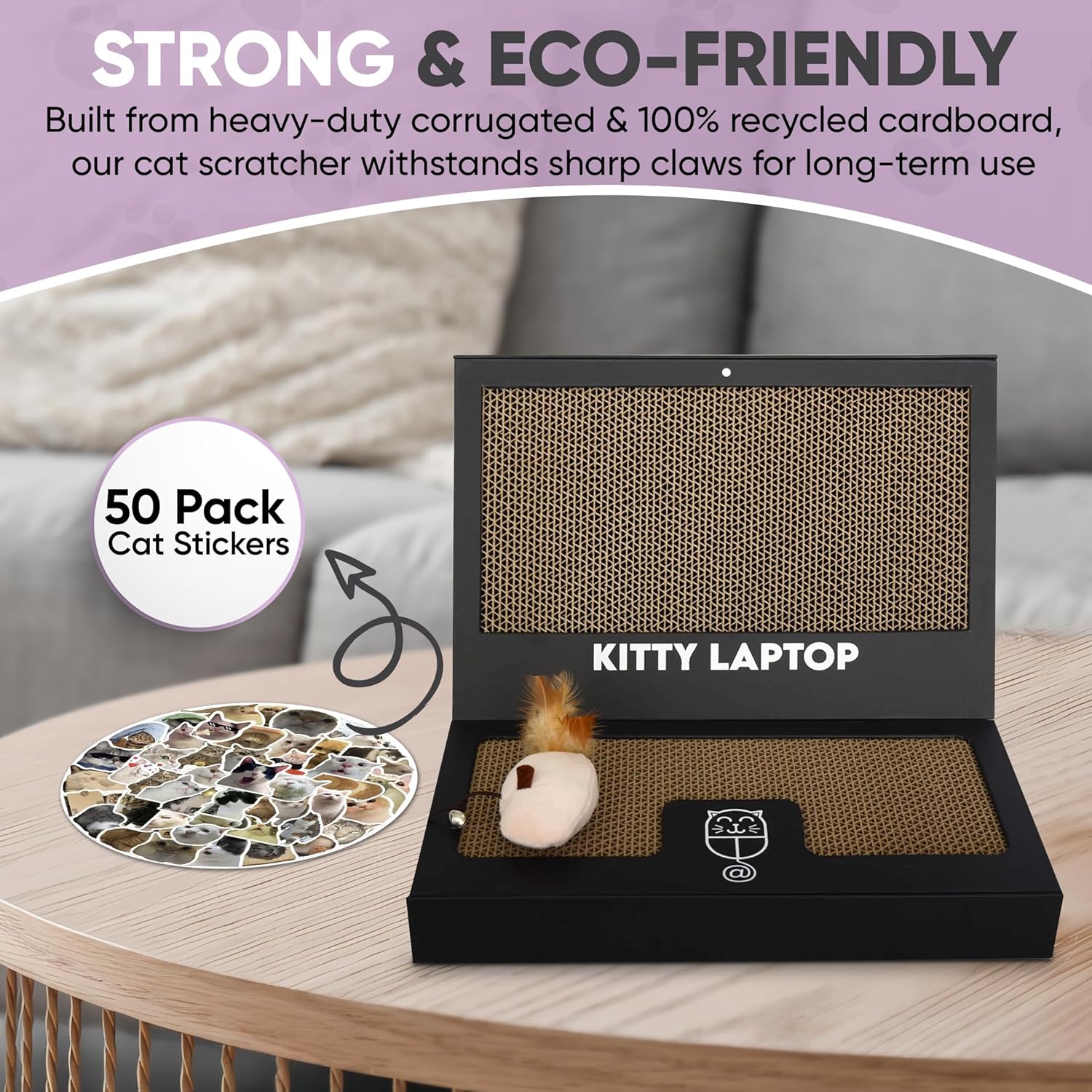 - 🕹 READY TO PLAY: Dive into fun right out of the box! Our cat scratch pad laptop comes pre-assembled, saving you time and hassle. Inside, a multi scratch pad for cats laptop, an interactive mouse cat toy, and 50 stickers for customization.