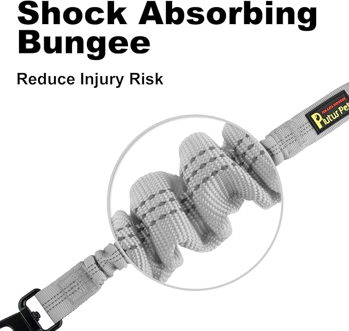 Plutus Pet Dog Seat Belt for Car, Adjustable Dog Car Harness with Carabiner Clip, Reflective Safety Dog Seatbelt Leash with Elastic Bungee, Gray