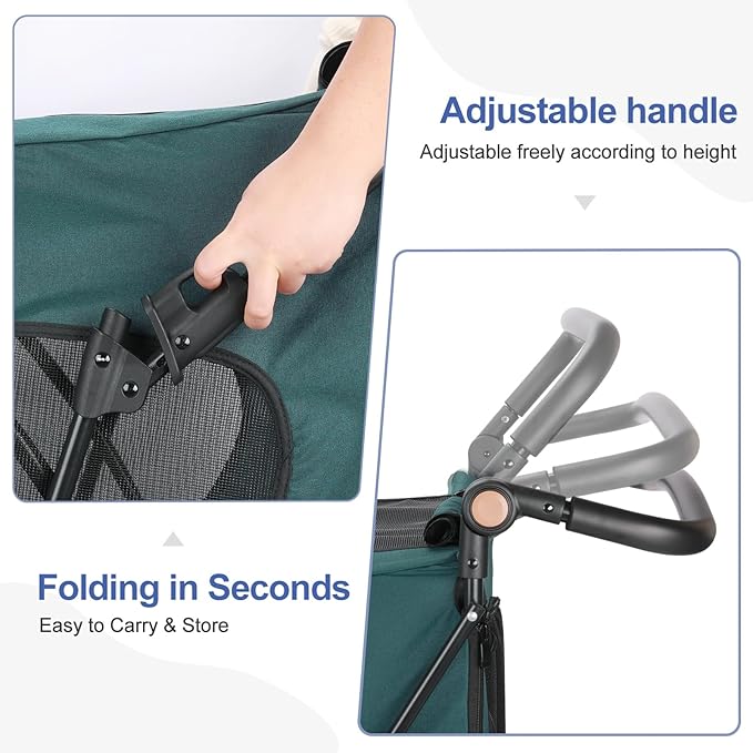 Large Dog Travel Stroller with 4 Heavy Duty Wheels Pet Stroller with Adjustable Handle - Double Doggie Capacity Jogger Wagon with Back Front Door for Small Medium Large Dogs (Dark Green-C)