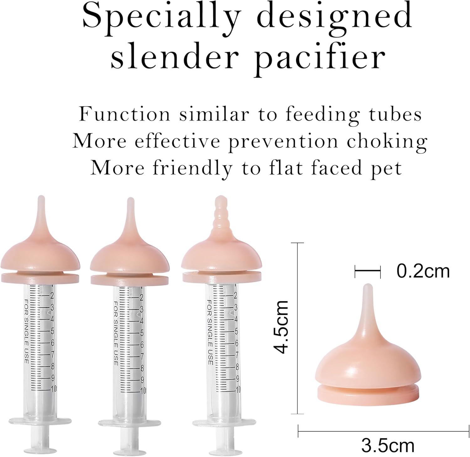 - Angled bottles are more suitable for puppy feeding: 45 °Angled puppy bottles for nursing pet babies to drink milk while lying down, which is the most natural way for pet babies to feeding milk. It is also more comfortable for humans to breastfeed, and holding puppy feeding bottle for a long time will not be tiring. The puppy nipple can be used in conjunction with a syringe, which can accurately control the amount of milk the baby drinks. Sometimes weak puppy need feeding with syringe