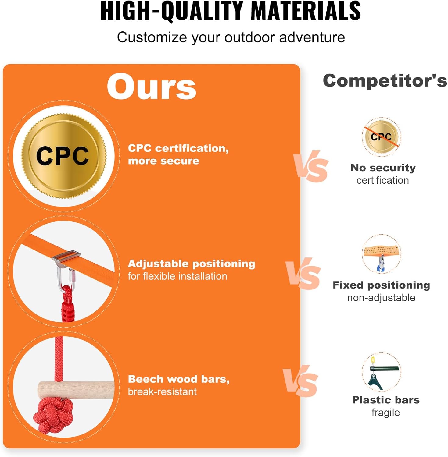 - Safety Design: Each backyard training equipment set can support up to 500 pounds, sufficient for two or more children to use simultaneously. The upgraded die-cast buckle straps, tensioners, and wider, thicker straps solve the issue of sagging ropes, securely locking onto trees to ensure children's feet don’t touch the ground for a worry-free play experience. The double-layer thermoplastic straps ensure the product doesn’t crack, providing a safe and sufficient gripping experience for children.