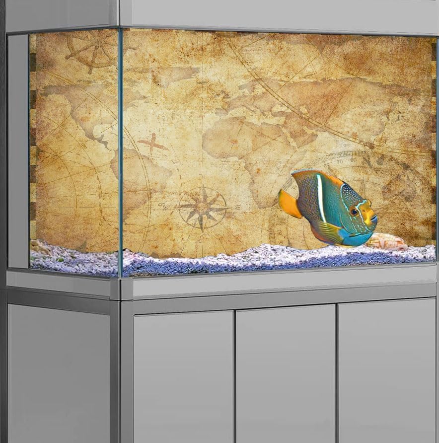 48X24IN Retro Old Travel World Map Terrarium Background, Art Parchment Pirate Treasure Map Reptile Habitat Background with 10EVA Double-Sided Tape