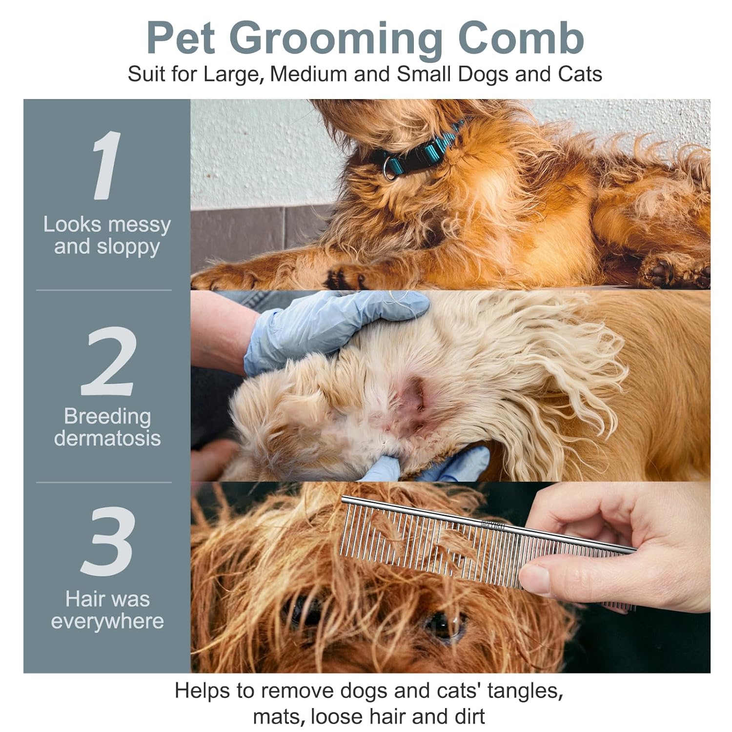YIRU Dog Cat Grooming Combs,Large Steel Comb for Knots,Mats & Loose Hair Removal,Professional Grooming Comb for Dogs Cats