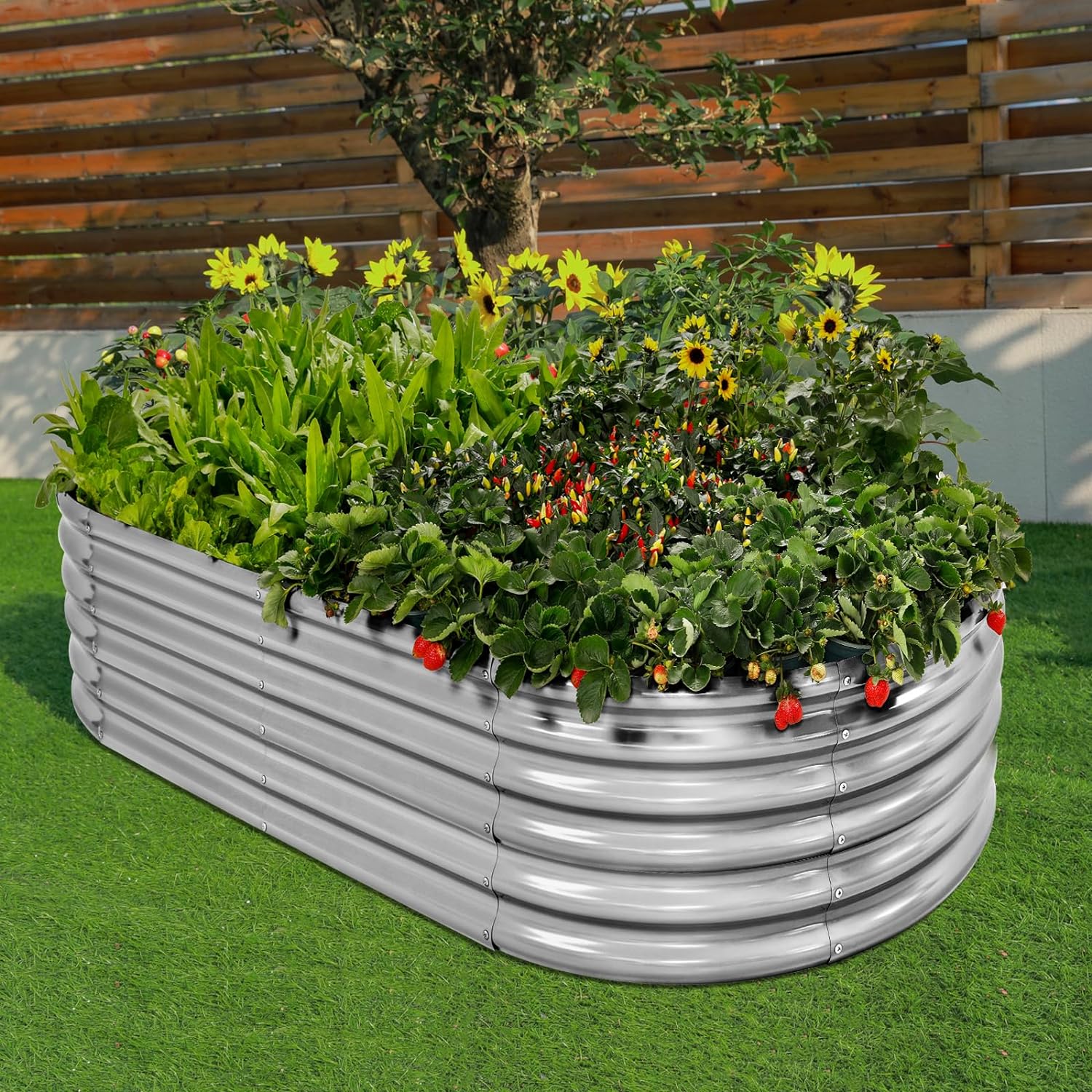 Land Guard 4×2×1.5ft Galvanized Raised Garden Bed Kit, Galvanized Planter Garden Boxes Outdoor, Oval Large Metal Raised Garden Bed for Vegetables……… (Classic Silver