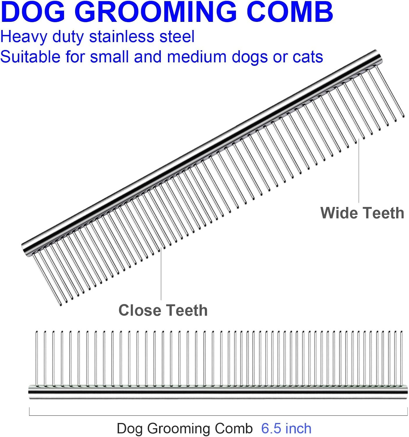 - Practical dog scissors kit: Dog grooming scissors kit includes 6.5-inch thinning shears, 6.5-inch curved scissors, grooming comb, cleaning cloth, and black case. So it can trim any part of your pet such as body, face, nose, ear, tail, paw etc