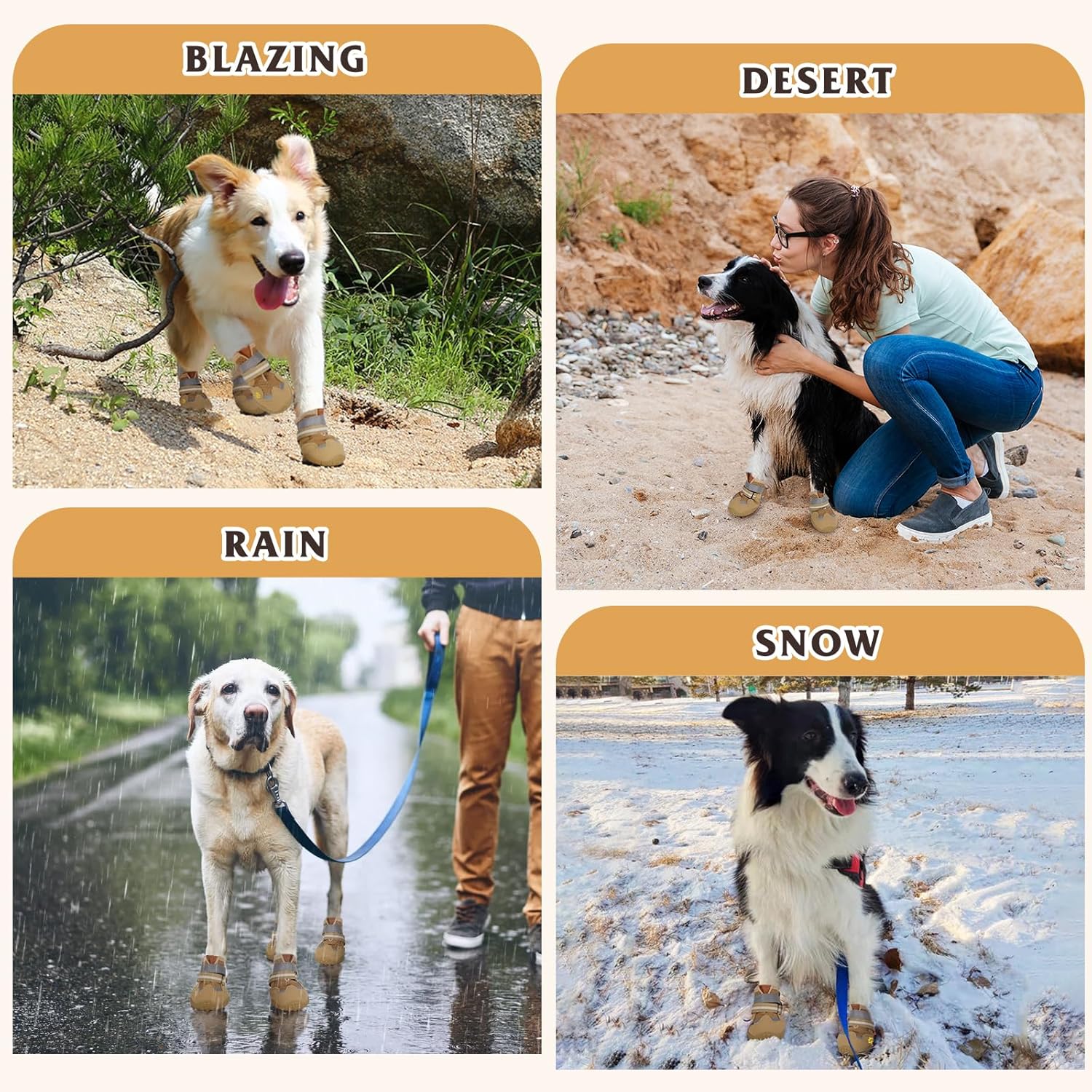 - [360°ANTI-SLIP & DURABLE] - The 360° anti-slip design of the shoe opening prevents the shoes for dogs from slipping off your dog's feet. The dog hiking boots are very soft for dog's paws and can help your dog walk and run better from sharp thorns, hot pavement, hardwood floors and glass