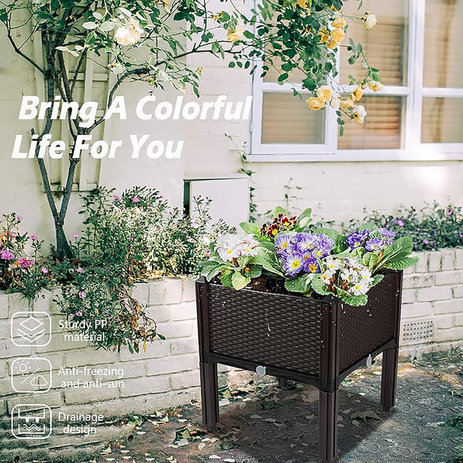 - 🌻【Durable Outdoor Growth Box】Our elevated planter boxes are made of reinforced PP material with a rattan pattern that is durable, lightweight, high load bearing, washable and reusable.