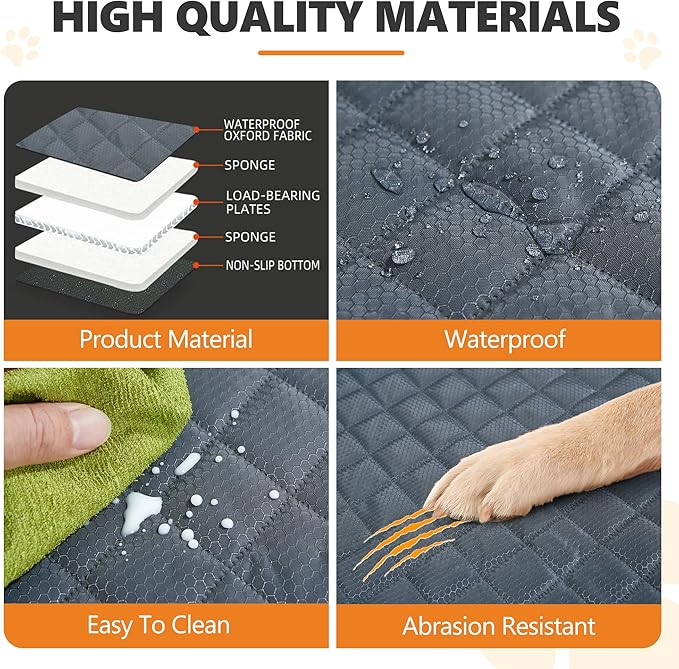 Back Seat Extender for Dog,Waterproof Hard Bottom Dog Car Seat Cover for Back Seat Protector,Foldable Camping Pet Hammock Bed,Easy Clean Travelling Accessories Car SUV Truck (Gray)