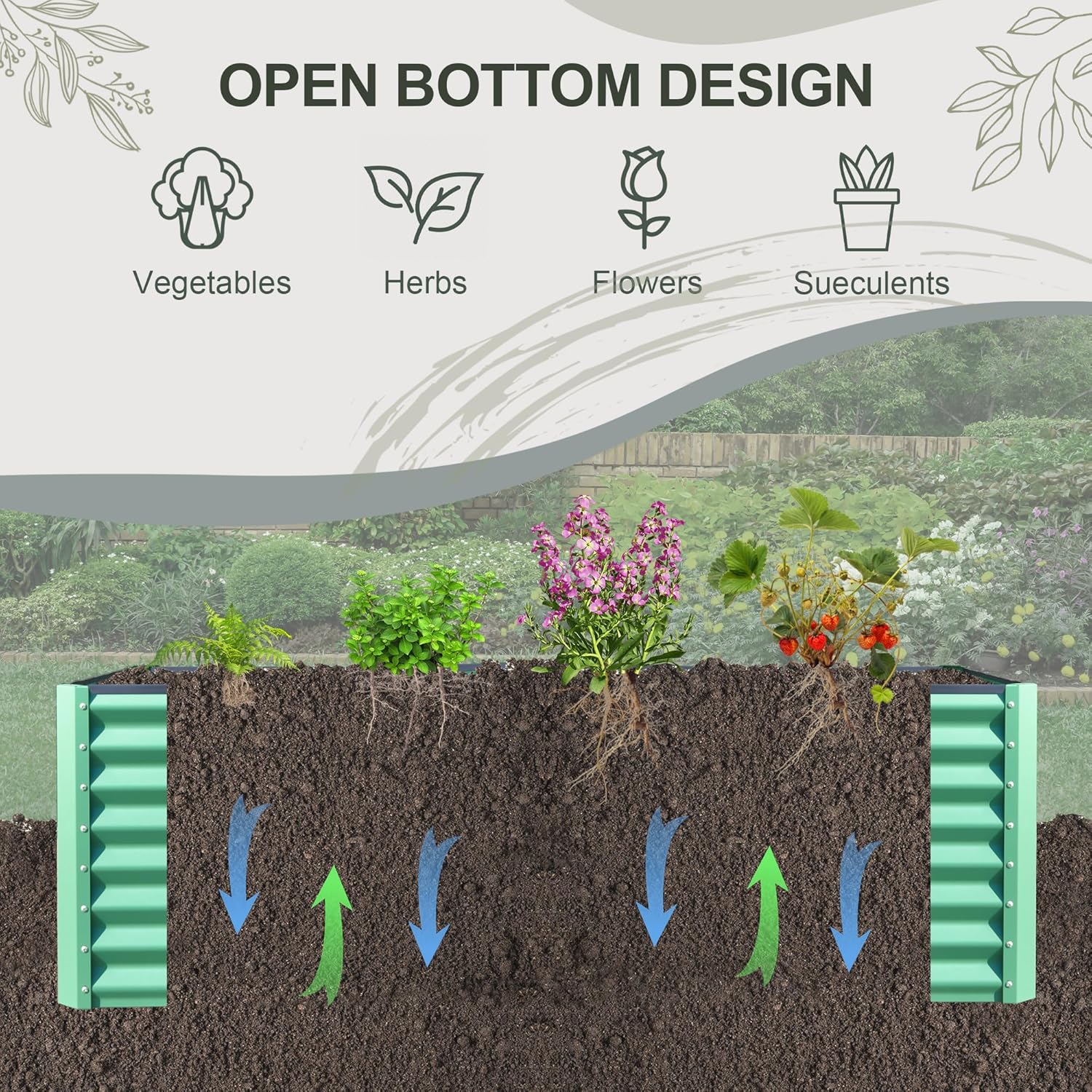 - Longer Growing Depth: Deeper growth space minimizes bending, fostering healthier roots. With 2 inches of depth, it accommodates up to 256 gallons of soil, ideal for medium to deep-rooted plants like broccoli and beans.