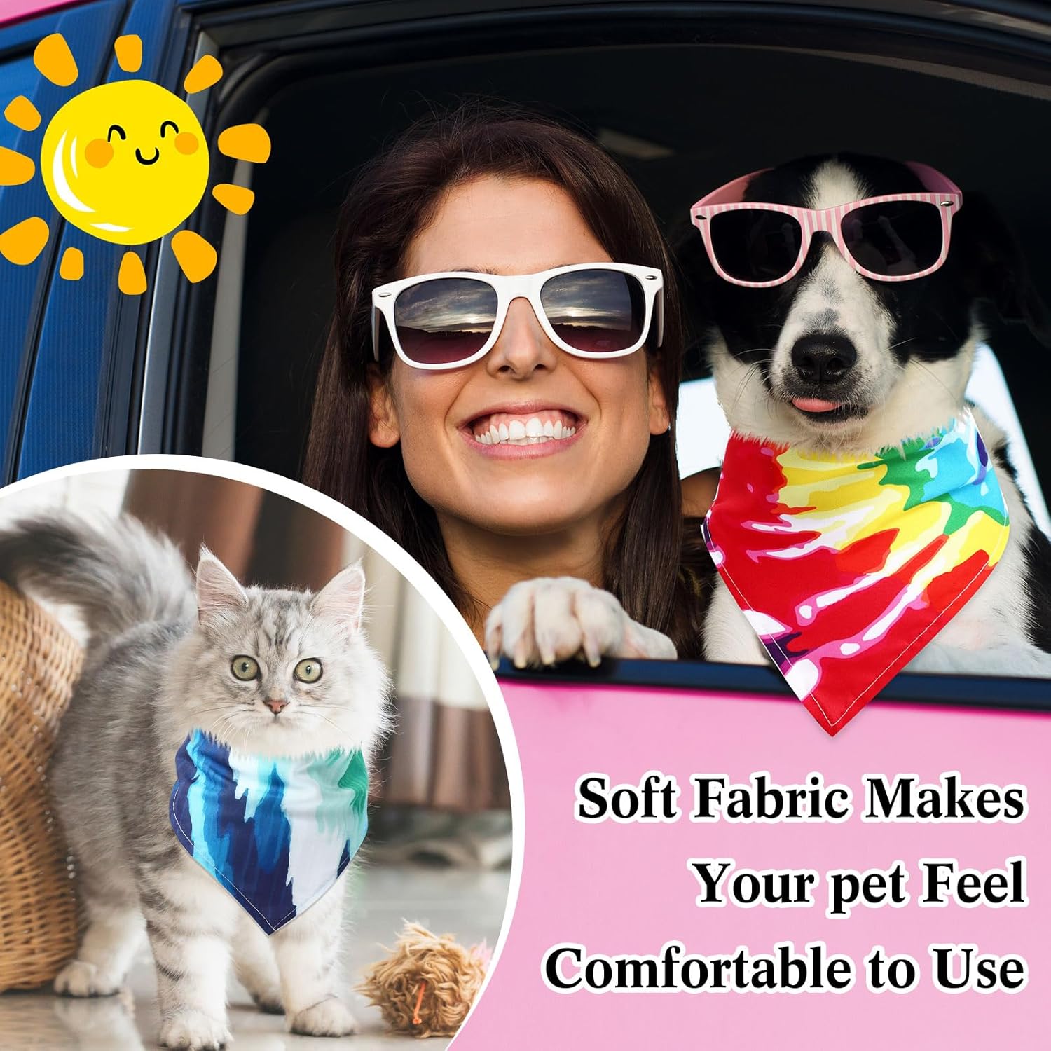 - Eye Catching Tie Dye Design: these dog bandanas are styled with bright, tie dye colors, adding vibrancy and fun to your pet's look; Wearing our triangle dog bibs at various events will turn heads and make your beloved pet the center of people's attention