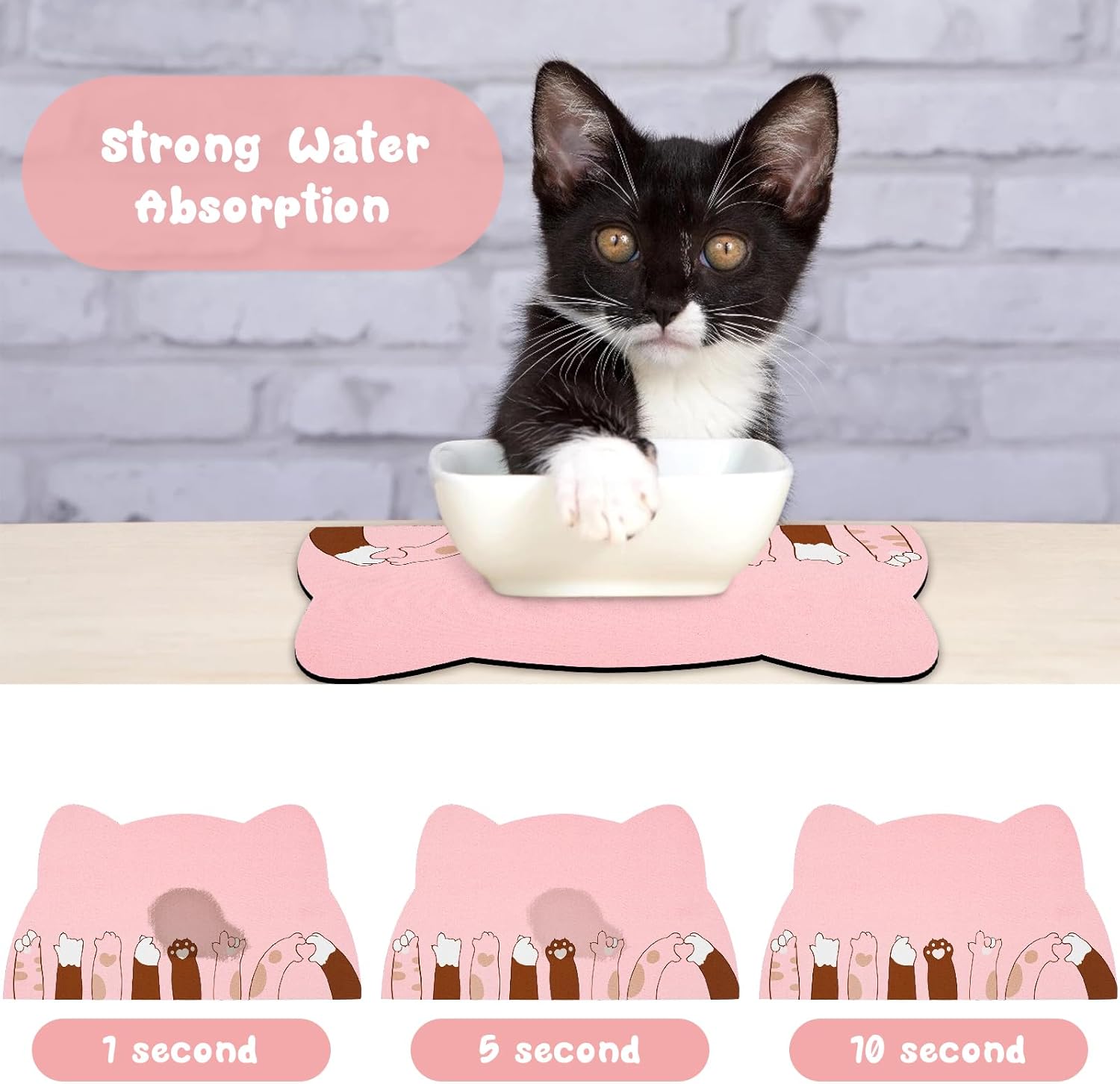 - 【Super Absorbent Pet Placemat】With highly absorbent surface and waterproof backing , this cat bowl mat can quickly absorb liquid and wet food stains to prevent food and water from spilling onto floor