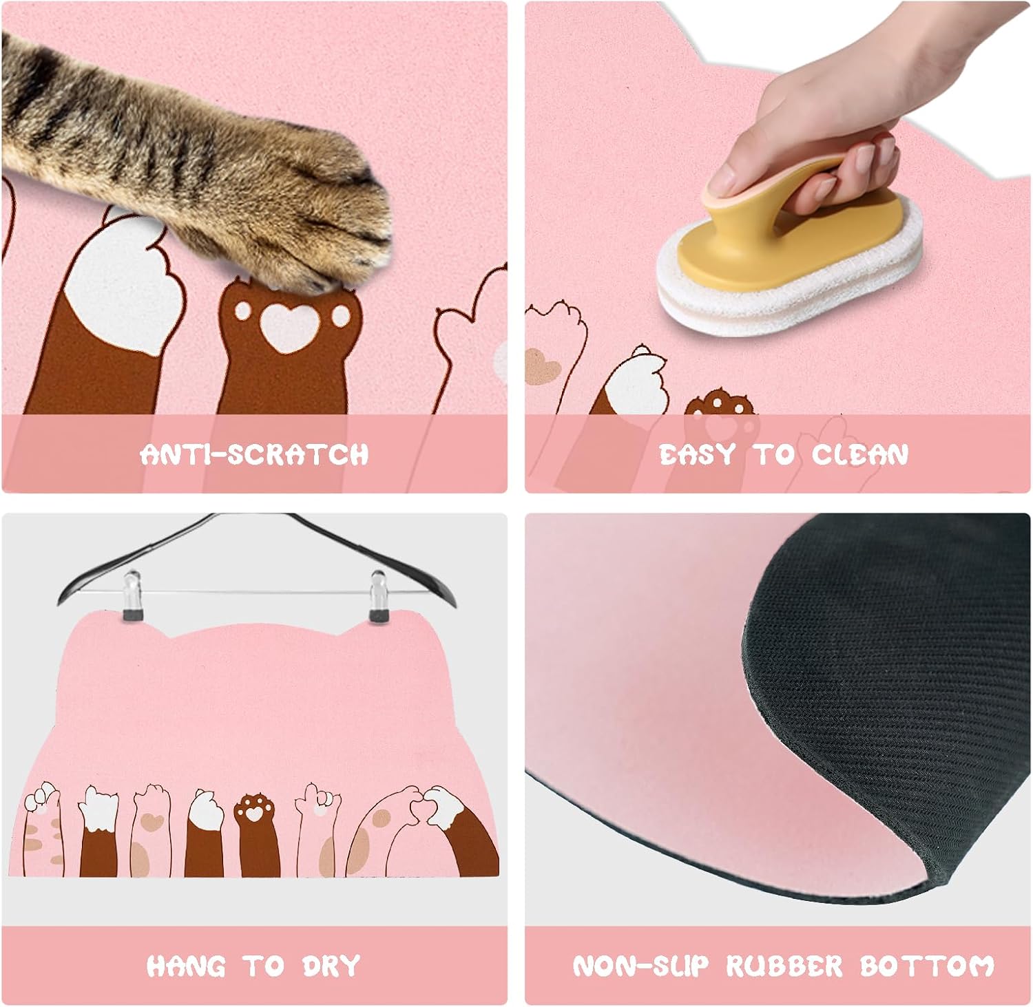 - 【Non-slip Rubber Backing】With slip-resistant rubber backing, it helps to keep the cat feeding mat securely in place and prevents cat water mat for floor protection from sliding around