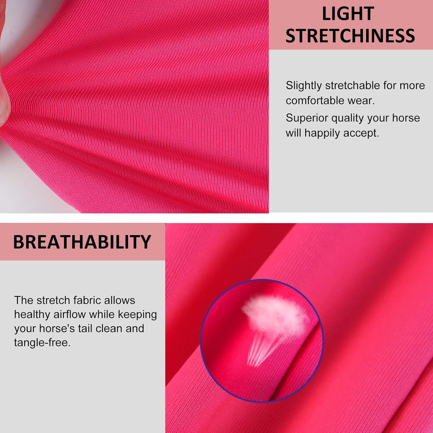 - Breathable: High level of breathability allows healthy airflow while keeping your horse’s tail clean, tangle-free, and lasts in all weather conditions.