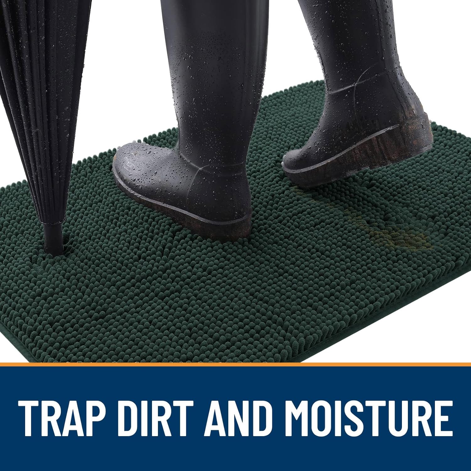 OLANLY Dog Door Mat for Muddy Paws 36x24, Absorbs Moisture and Dirt, Absorbent Non-Slip Washable Doormat, Quick Dry Chenille Mud Mat, Entry Indoor Entryway Carpet for Inside Floor, Blackish Green