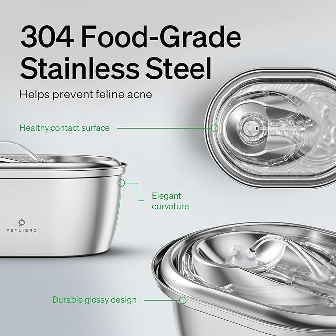- Durable 304 Stainless Steel & Dishwasher Safe: PETLIBRO cat water fountain made of 304 stainless steel, it is BPA-free, rust and corrosion-proof. Only the stainless steel part can be washed in the dishwasher.