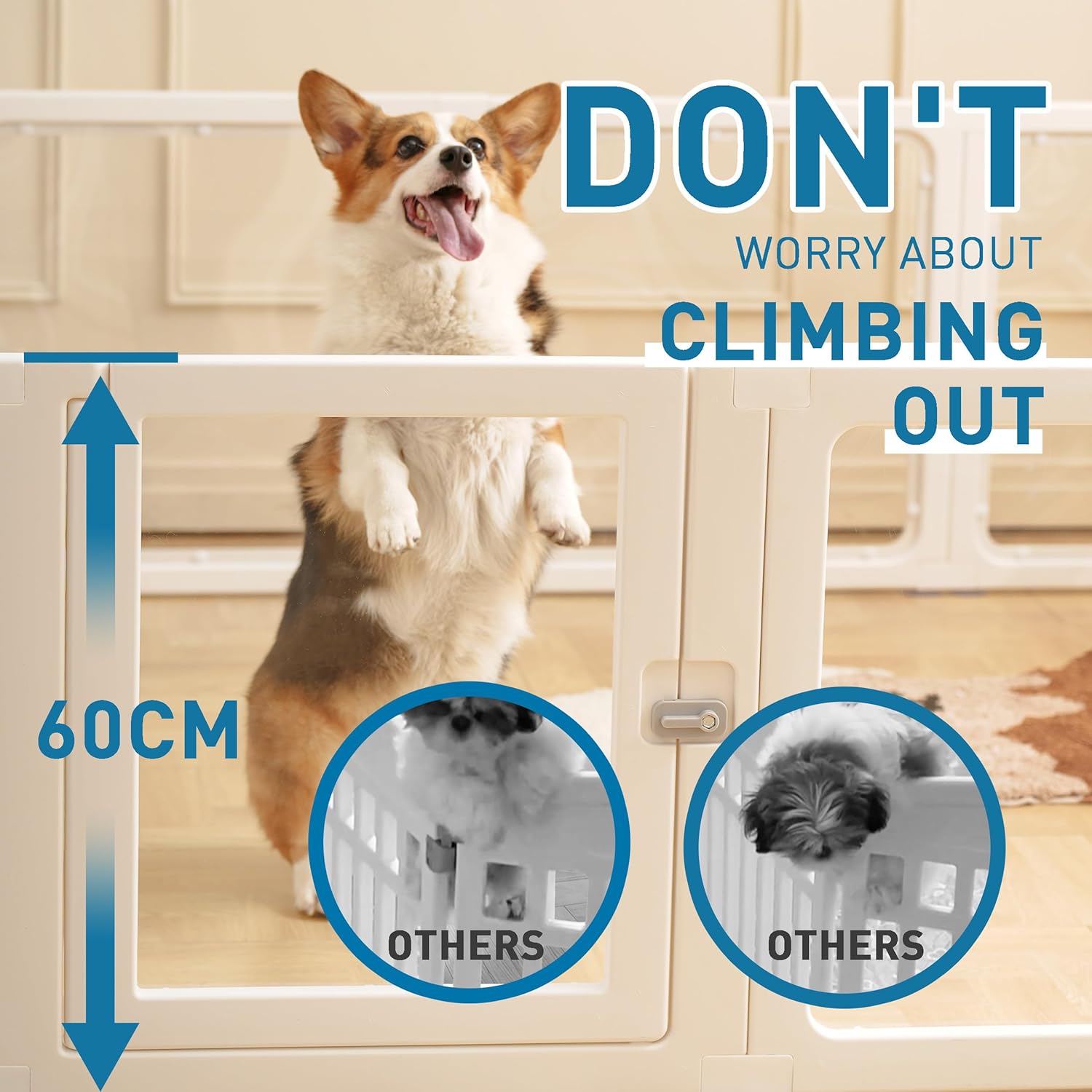 Citylife Dog Playpen with Door Clear Pet Playpen for Indoor Outdoor Easy to Install and Remove Puppy Playpen for Dogs, Cats, Bunnies, Pigs, 12 Panels