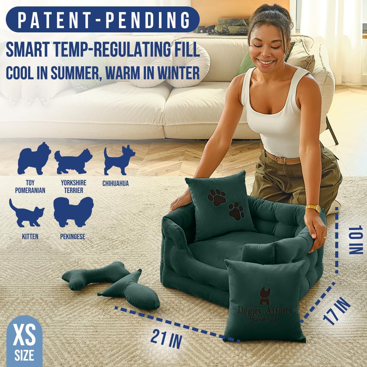 Luxury Dog Bed Chesterfield – Handcrafted Velvet Throne for Dogs | Joint Support, Calming & Temp-Regulating Comfort | Durable 5+ Years, Anti-Claw, Washable 100+ Times – XS, Green