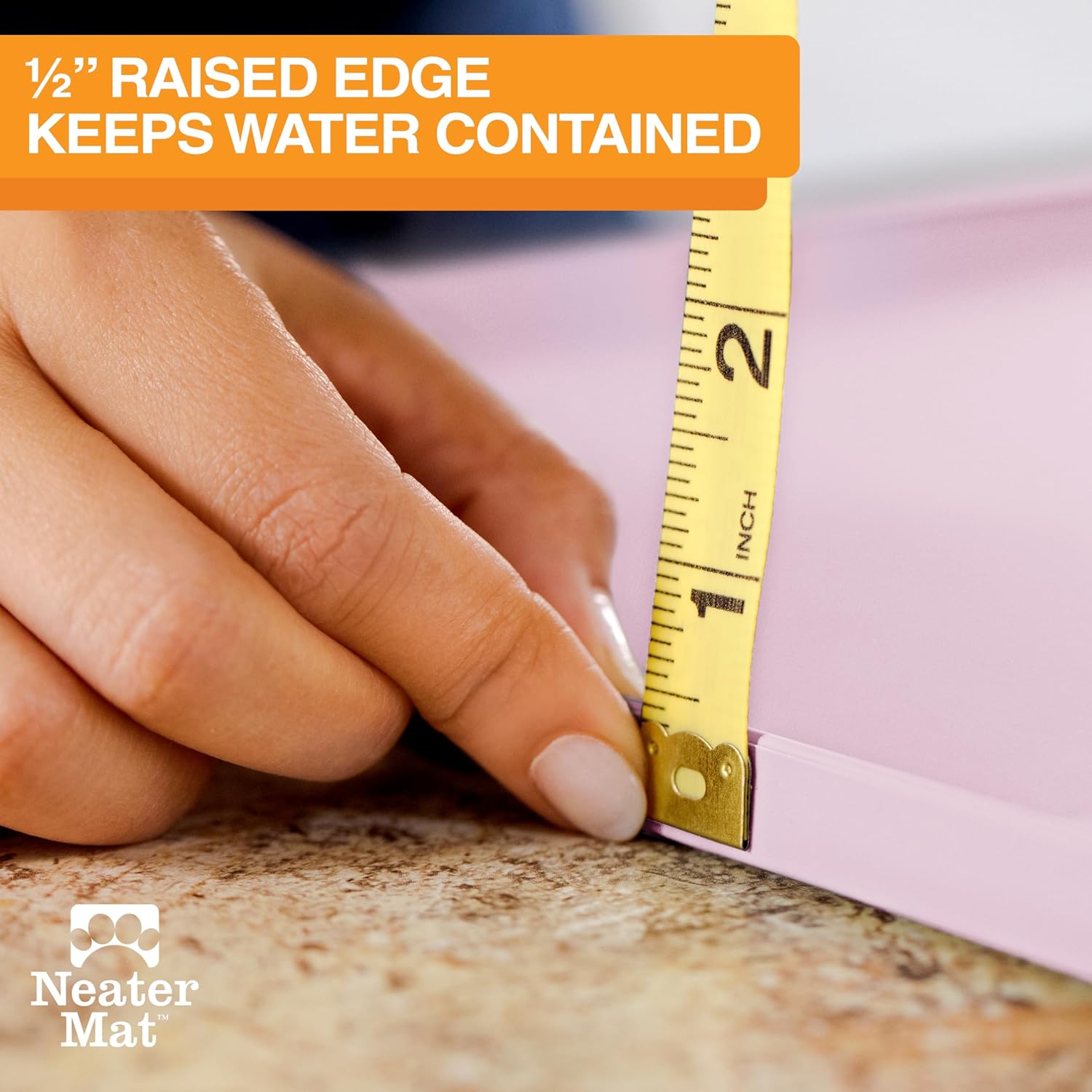 Neater Pet Brands Neater Mat Pet Mats for Food and Water, Cat & Dog Bowl Mat Waterproof Silicone, Feeding Tray, Dog Food Mats for Floors, Placemat w/Raised Edge for Under Bowls, 24" x 16", Light Pink