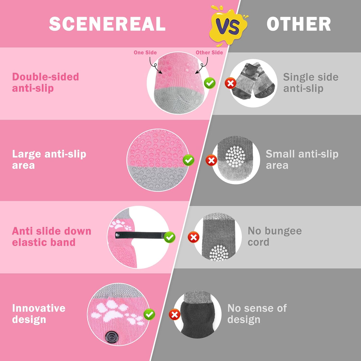 SCENEREAL Anti Slip Dog Sock to Prevent Licking Paws for Hardwood Floors, Boots & Paw Protector Shoes for Hot/Cold Pavement with Grippers, Double Sides Grips for Small Medium Large Senior Dogs, M