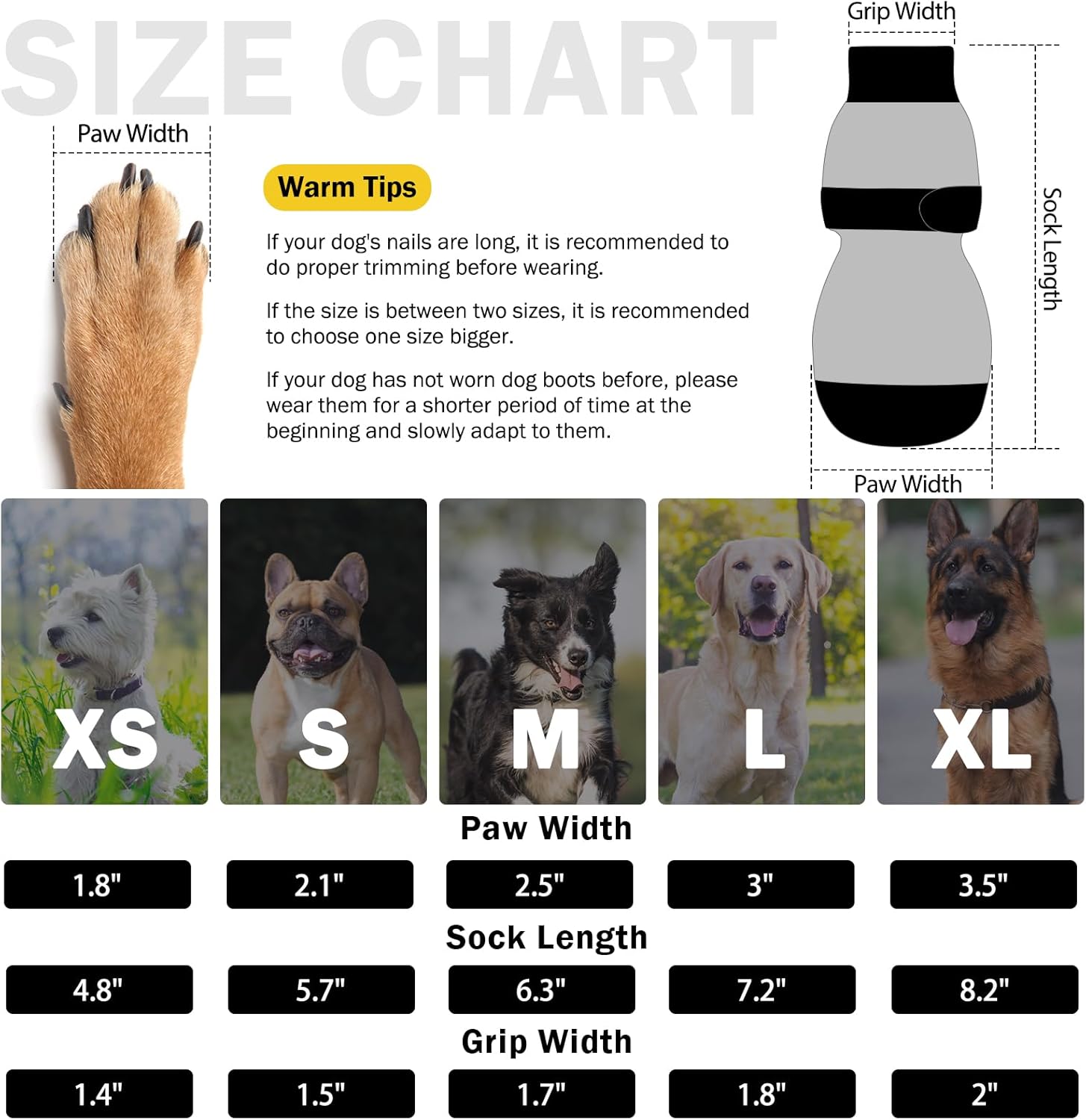 • SIZE GUIDE: M-Paw width 2.5in, stocking length 6.3in. If the paw width is between two sizes, please choose the larger size. Includes 6 dog grip socks (two more available for replacement than other sets).