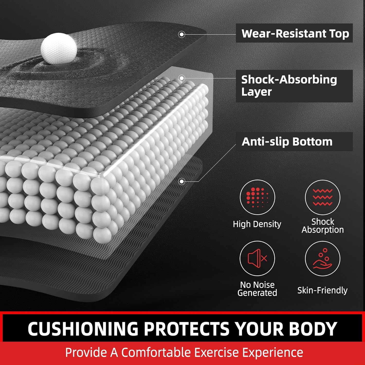 - Double-sided & Anti-slip Texture: The anti-slip texture of the thick yoga mat generates greater friction and better grip. Large exercise mat prevents hands, feet or mats from sliding and losing balance. Thick workout mat gives practitioners a more stable and safe practice environment to focus on posture and breath