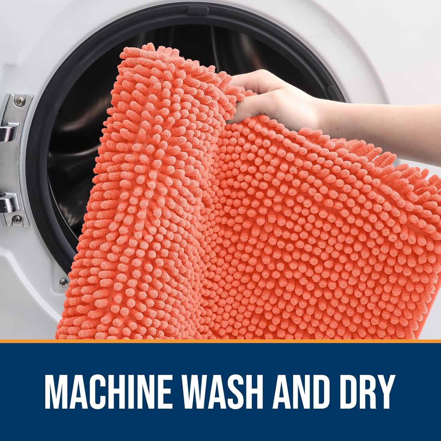 OLANLY Dog Door Mat for Muddy Paws 70x24, Absorbs Moisture and Dirt, Absorbent Non-Slip Washable Doormat, Quick Dry Chenille Mud Mat for Dogs, Entry Indoor Entryway Carpet for Inside Floor, Coral