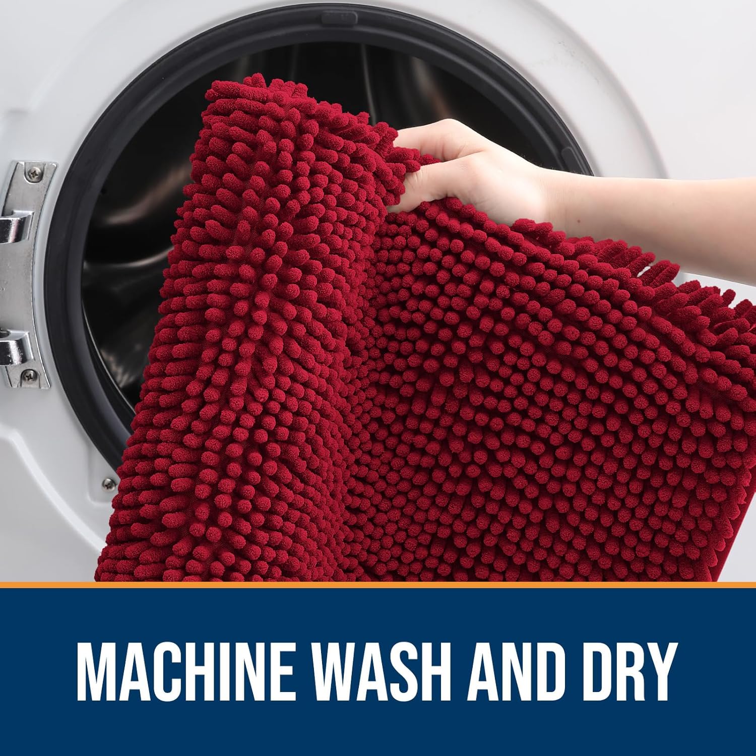 OLANLY Dog Door Mat for Muddy Paws 59x35, Absorbs Moisture and Dirt, Absorbent Non-Slip Washable Doormat, Quick Dry Chenille Mud Mat for Dogs, Entry Indoor Entryway Carpet for Inside Floor, Red