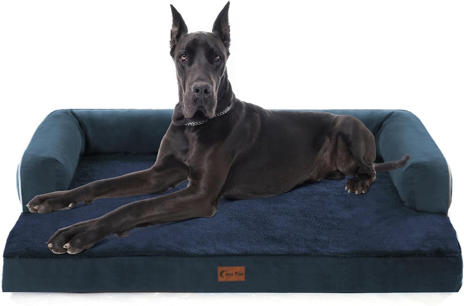 XXL Dog Bed with Bolsters, Orthopedic Dog Beds for Extra Large Dogs, Waterproof Memory Foam Dogs Beds XLarge with Removable Washable Cover, Nonskid Bottom (XX-Large,Navy Blue)
