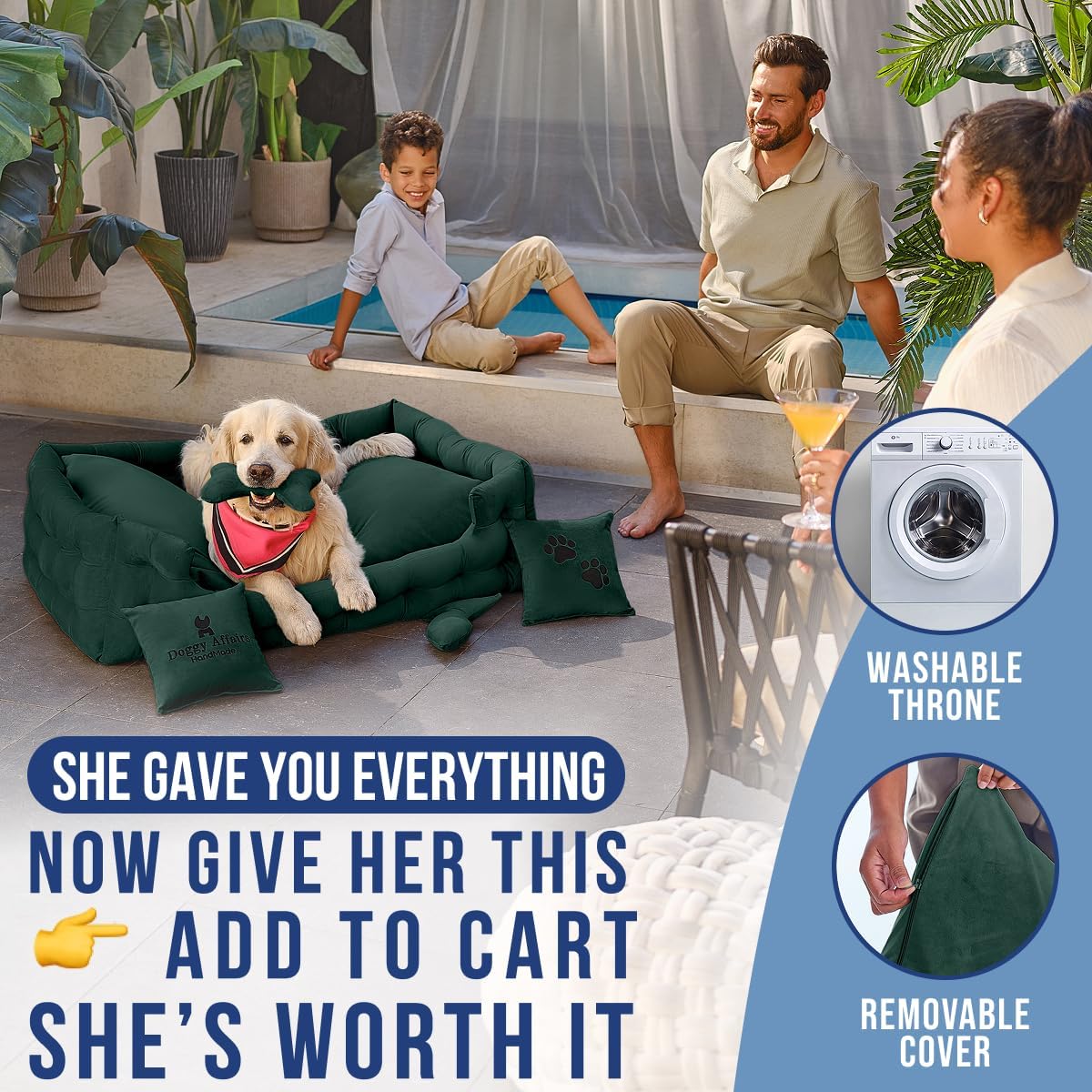 Luxury Dog Bed Chesterfield – Handcrafted Velvet Throne for Dogs | Joint Support, Calming & Temp-Regulating Comfort | Durable 5+ Years, Anti-Claw, Washable 100+ Times – XL, Green