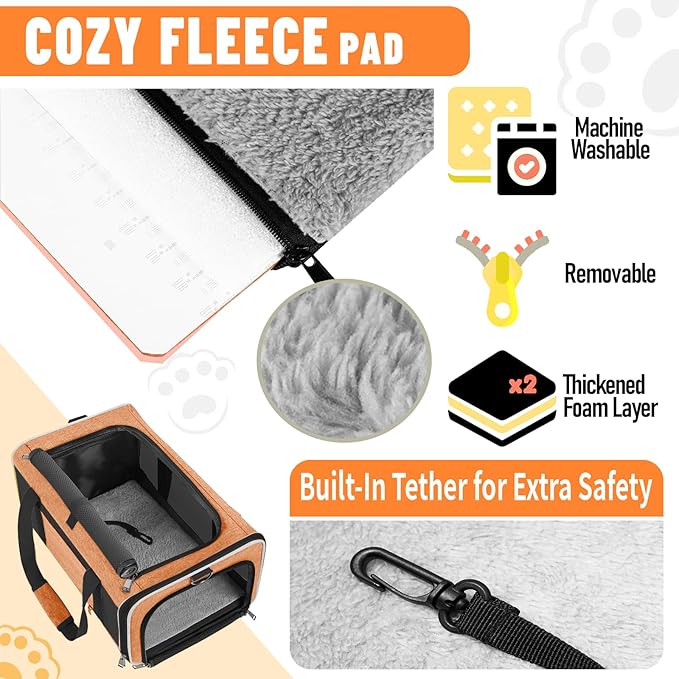 - Secured with auto-locking zippers, your pet can't escape easily by pushing against the zipper from the inside. An inner tether for extra safety. A reflective stripe on the side helps you feel at ease when you walking the dog at night